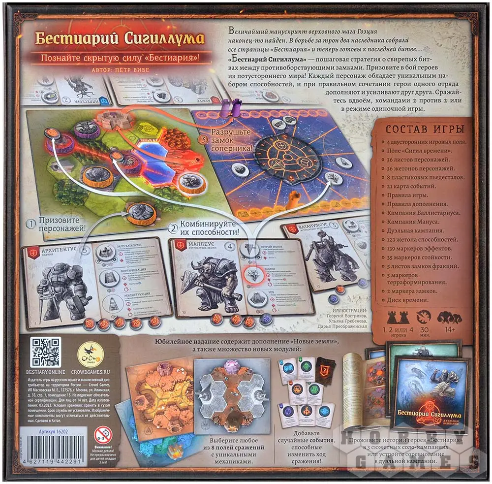В игре "Бестиарий Сигиллума" вы станете призывателями в королевстве Двух замков. Вам предстоит командовать отрядами легендарных персонажей, соревнуясь в стратегическом планировании. Вы будете повелевать бессмертными сущностями из потустороннего мира и бороться за контроль над катапультными башнями, чтобы обрушивать их огонь на замок соперника. Для победы необходимо не только продумывать свои ходы, учитывая решения вашего соперника, но и с умом подбирать персонажей в свой отряд, обращая внимание на их сильные и слабые стороны.