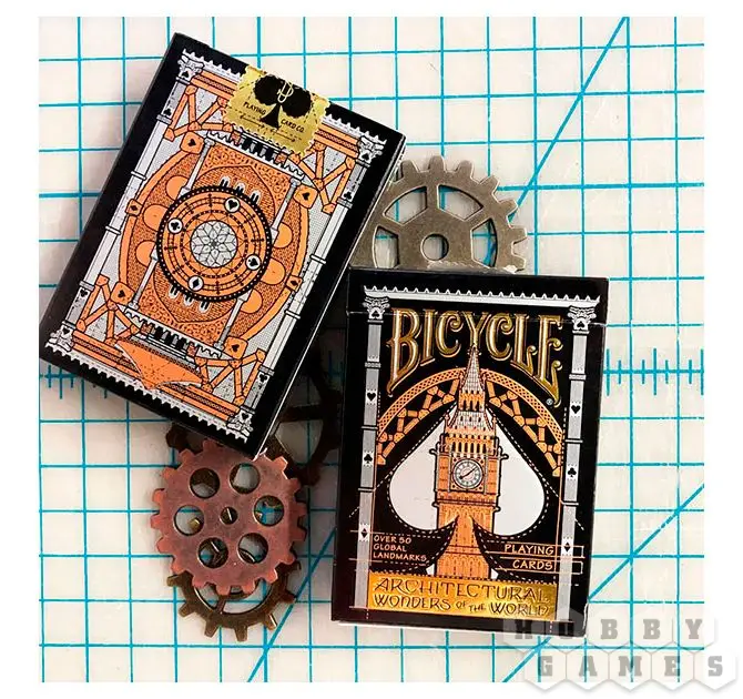 Коробка Bicycle Architectural Wonders of the World содержит рельефные детали и фольгу, которые еще больше подчеркивают красоту колоды.