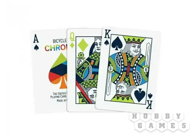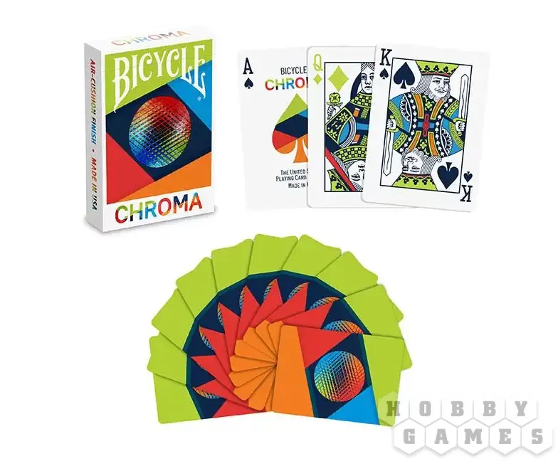 Колода Bicycle® Chroma придаст новые краски вашим веерам и флоришам благодаря уникальному дизайну рубашки. Ваши веера и флориши будут абсолютно эпическими, а интенсивная глубина и визуальная привлекательность колоды игральных карт Chroma просто ошеломляет, когда вы выбираете ее для своей любимой карточной игры!