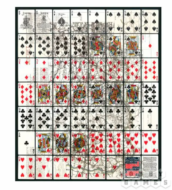 На первый взгляд, обычная колода карт скрывала под собой план, позволяющий союзным пленным сбежать из немецких концлагерей. Карта побега была спрятана внутри игральных карт: после намокания игральная карта делилась на две части, на одной из которых была напечатана карта. Среди военнопленных колода стала известна под названием “Колода-карта”.