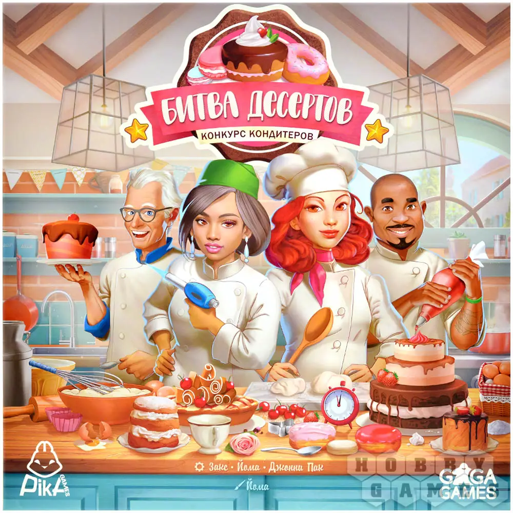 "Битва десертов: Конкурс кондитеров" – это семейная настольная игра, в которой вы примерите на себя роль кондитеров. Вашей задаче будет приготовление десертов, и чем их будет больше, тем выше ваши шансы на победу, ведь каждый завершённый рецепт приносит вам победные очки. У каждого игрока есть личный планшет, представляющий стол для готовки. На нём хранятся выбранные вами ингредиенты, которые вы будете использовать для приготовления десертов. Но их количество будет ограничено, ведь нельзя же занимать ими всю рабочую область! Подходите к выбору составляющих с умом, чтобы вам точно хватило на десерт и не осталось излишков – зачем им занимать ваше рабочее место?
