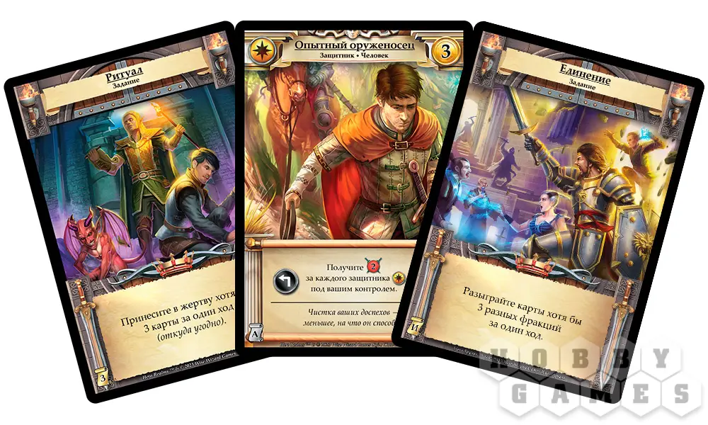 Тонко балансируя и подстраивая колоду под свою стратегию и актуальные нужды, игроки пытаются вырвать победу и понизить количество очков стойкости противника до нуля!