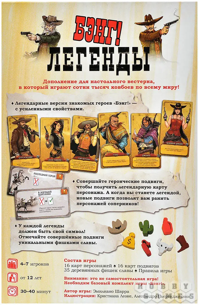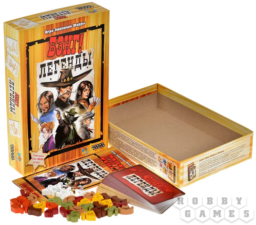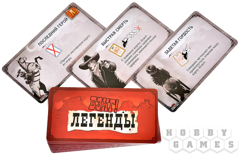 "Бэнг! Легенды" – дополнение, которое превращает обычную игру в эпическую сагу. Здесь знакомые персонажи обретают новую силу, а ваши решения определяют, останетесь ли вы в памяти как бесстрашный ковбой или канете в небытие. Готовы ли вы бросить вызов судьбе и написать свою легенду?