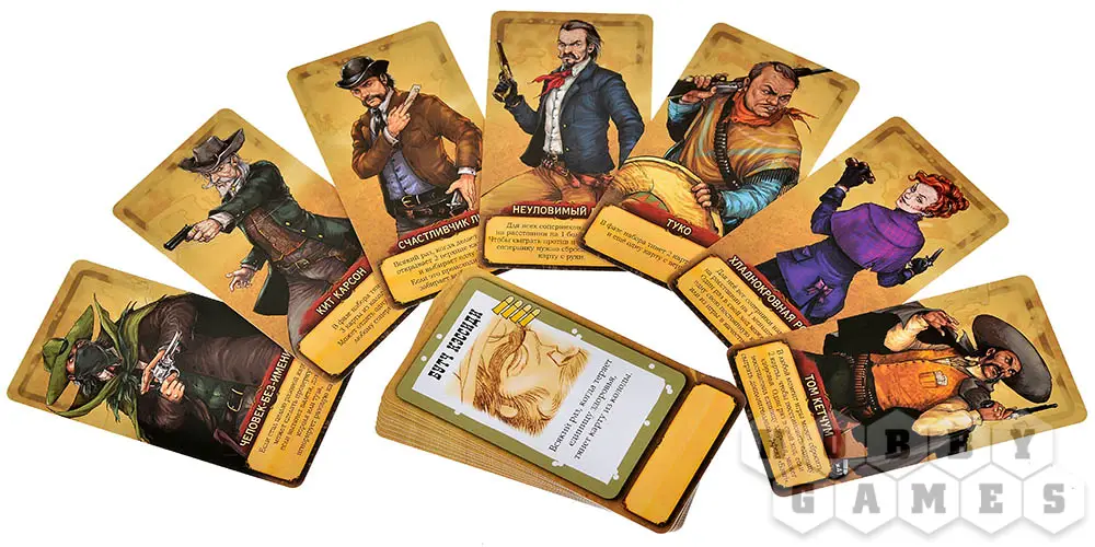 Все игроки оказываются на настоящем Диком Западе и случайным образом получают различные роли: вы можете стать Шерифом, его Помощником, Бандитом или даже Отступником. Затем идёт выбор персонажей, каждый из которых уникален своими способностями. Вся соль игры в том, что игрокам известен лишь Шериф, а вот остальные роли скрыты и остаётся только догадываться об истинных намерениях участников! Накаляет обстановку также и то, что у каждой роли свои условия победы: Шерифу нужно подстрелить всех бандитов и Отступника; бандитам – шерифа, но и друг друга они пострелять тоже не против; а Отступнику нужно просто остаться последним в живых. Различные действия совершаются за счёт простого розыгрыша карт: начиная с глотка пива для восстановления здоровья и заканчивая вызовом игрока на дуэль.