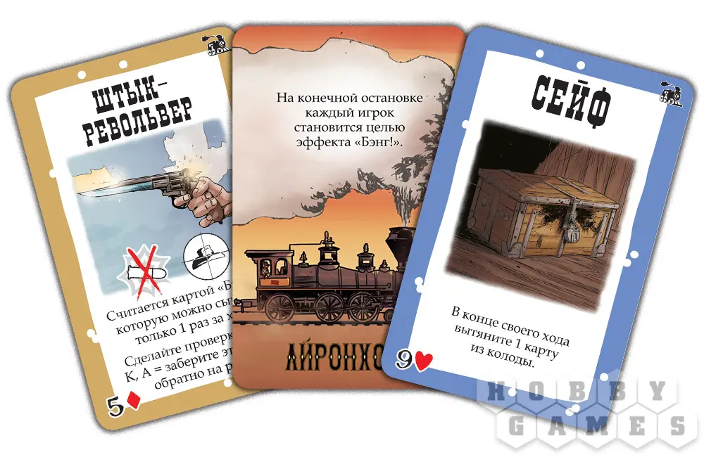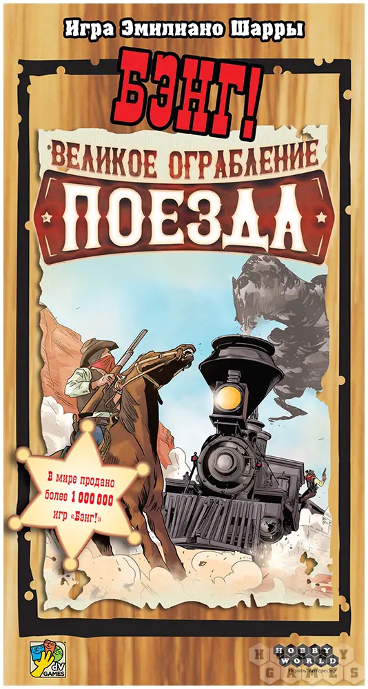 "Великое ограбление поезда" – это дополнение для настольной игры "Бэнг!", название которого говорит само за себя! Теперь пальба из револьверов обретает ещё одну цель – поезд, набитый драгоценностями. В комплекте данного набора вы найдёте специальные жетоны станций, дающие разные бонусы, и жетон поезд, а также новых персонажей и уникальные карты, с помощью которых вы сможете эффективнее захватывать или защищать вагоны поезда. Выберите свою сторону и в путь-дорогу!
