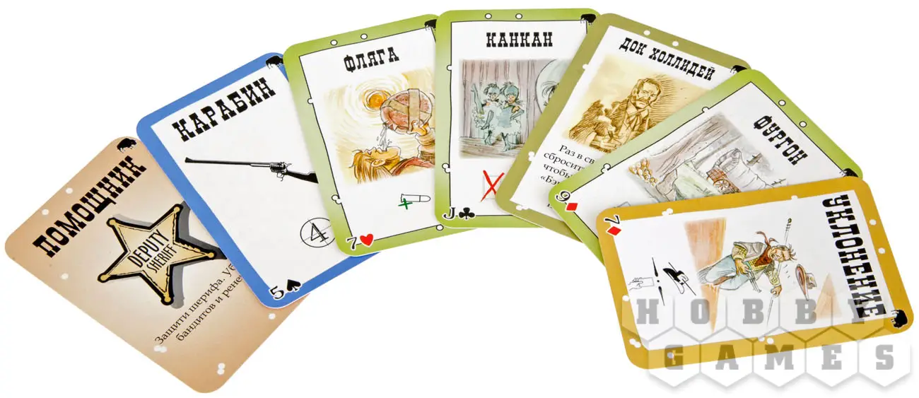 Все игроки оказываются на настоящем Диком Западе и случайным образом получают различные роли: Вы можете стать Шерифом, его Помощником, Бандитом или даже Отступником. Затем идёт выбор персонажей, каждый из которых уникален своими способностями. Вся соль игры в том, что игрокам известен лишь Шериф, а вот остальные роли скрыты и остаётся только догадываться, кто есть кто! Накаляет обстановку также и то, что у каждой роли свои условия победы: Шерифу нужно подстрелить всех бандитов и Отступника; бандитам – шерифа, но и друг друга они пострелять тоже не против; а Отступнику нужно просто остаться последним в живых. Различные действия совершаются за счёт простого розыгрыша карт: начиная с глотка пива для восстановления здоровья и заканчивая вызовом игрока на дуэль Подозрения, интриги и тайные сговоры, стрельба вслепую… Можете представить, что начинает твориться уже на первых минутах игры?