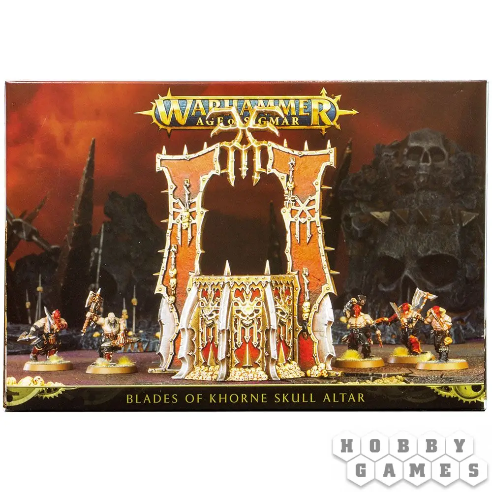 Где бы ни сражались последователи Кровавого Бога, на месте битвы они обязательно возводят Алтарь Черепа (Skull Altars) – ужасающий монумент во славу Кхорна, славя которого получают благословение. Возвышающийся над землёй Алтарь Черепа сделан из жестоких даров, принесённых в жертву во имя Кхорна.