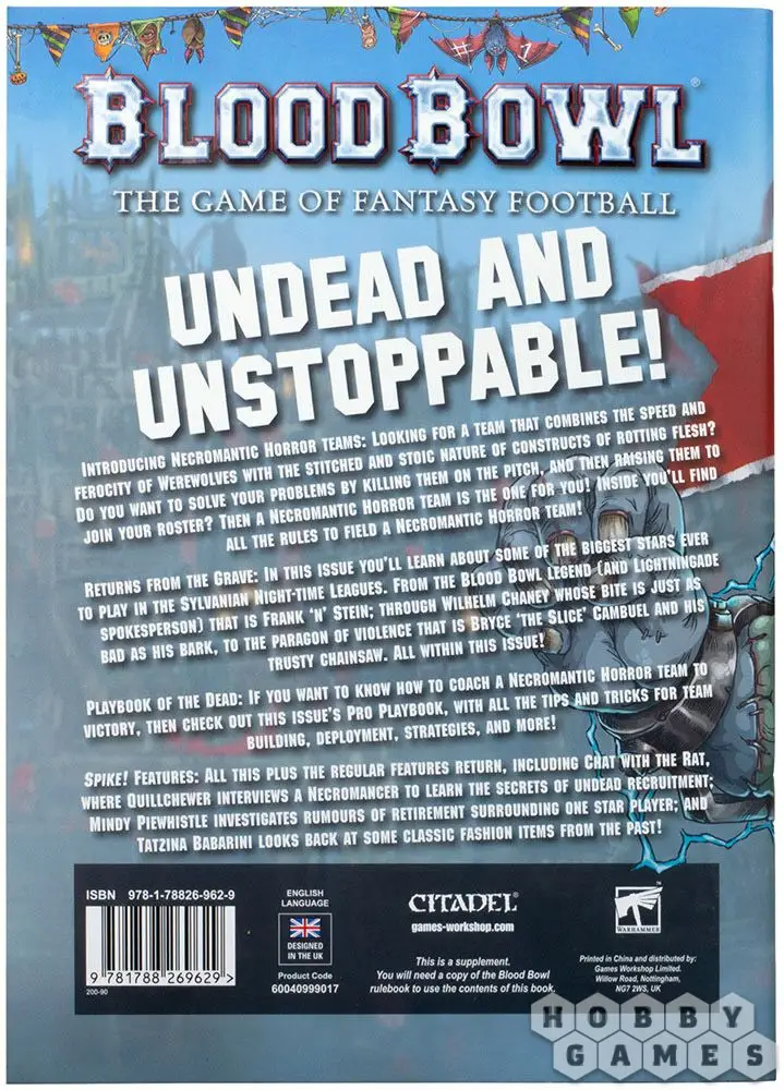 36 страниц этого покрытого пылью фолианта наполнены чёрным юмором и правилами, что помогут вашей команде пройти долгий путь от могилы до победного конца. Это первый номер журнала Spike!, вышедший после нового издания Blood Bowl, так что содержимое было немного изменено, но любители спорта всё равно найдут его знакомым. В составе выпуска: