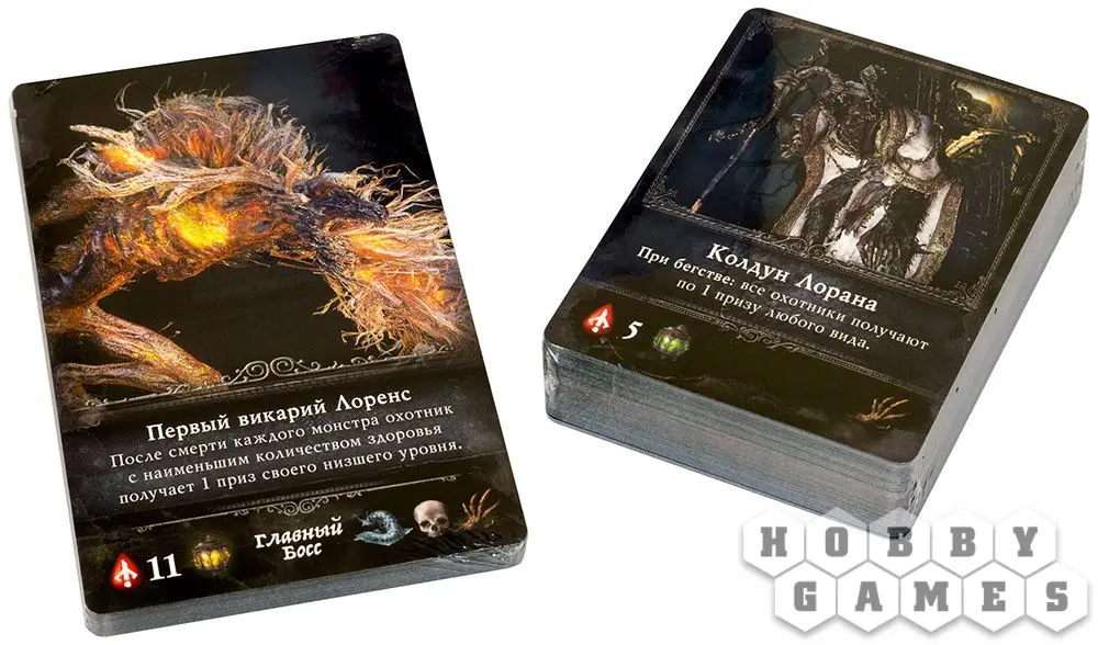 В Bloodborne одержит победу только один из игроков, но при этом командная работая является единственной возможностью одержать победу в битве с монстрами. Против чудовища всем игрокам нужно разыграть по одной карте в закрытую. Если после раскрытия карт урона будет достаточно для победы над монстром, то все получают заслуженную награду. Но может случиться и так, что охотники намерено сыграют карты, чтобы один из них пал от рук босса и потерял свой запас отголосков крови! Только хитрость поможет победить.