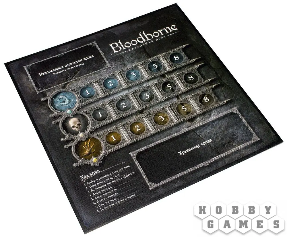 В Bloodborne победить сможет только один игрок, но без работы в команде любое чудовище станет для игроков непреодолимым препятствием. Чтобы справится с монстром, всем игрокам нужно сыграть против него по одной карте, но так, чтобы другие охотники заранее не видели эффект карты. Если после вкрытия карт урона будет достаточно для победы над монстром, то всем участникам достанется заслуженная награда. Но может случиться и так, что охотники намерено сыграют карты, чтобы один из них пал от рук босса и потерял свой запас отголосков крови!