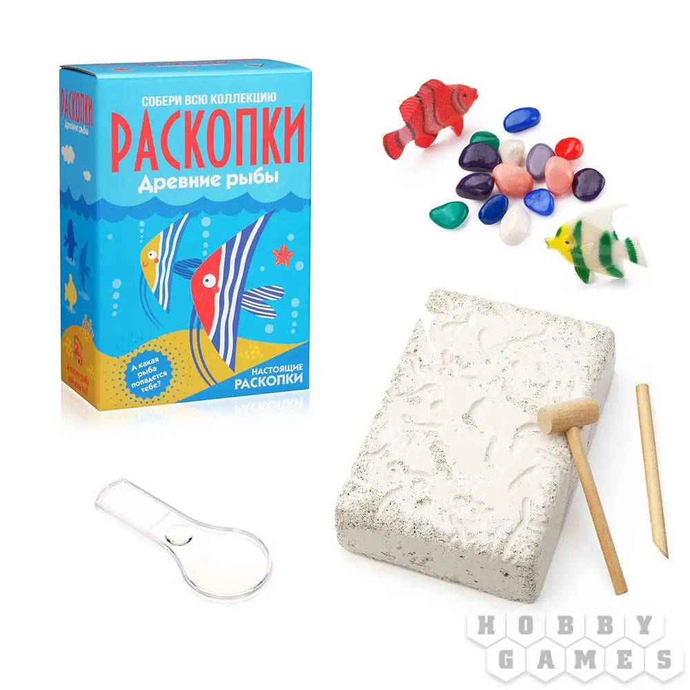 Приготовьтесь ощутить себя в роли самого настоящего археолога! Увлекательные раскопки и поиск сокровищ теперь могут с лёгкостью оказаться на вашем столе. Древние артефакты и доисторические драгоценности заключены внутри бруска из окаменелого грунта. С помощью специальных инструментов извлеките на поверхность окаменелых рыб и другие интересные находки.
