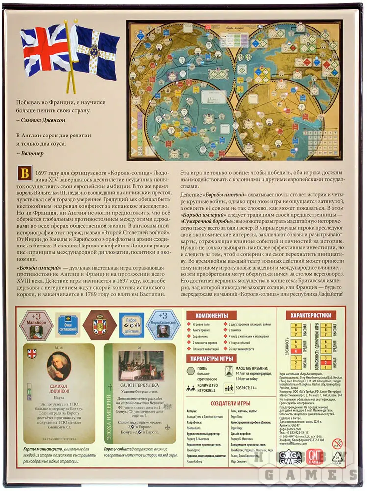 В ходе игры вам предстоит пройти через шесть мирных раундов и участвовать в четырёх эпических войнах. В "Борьбе Империй" каждое решение является ключевым, все ваши действия будут оказывать влияние на территории, рынки и даже другие государства по всему земному шару. Вы сможете участвовать в дипломатических соглашениях, которые помогут вам повысить свои шансы на победу в грядущих войнах. Погрузитесь в этот захватывающий мир двух воинствующих империй и проявите свои стратегические таланты!