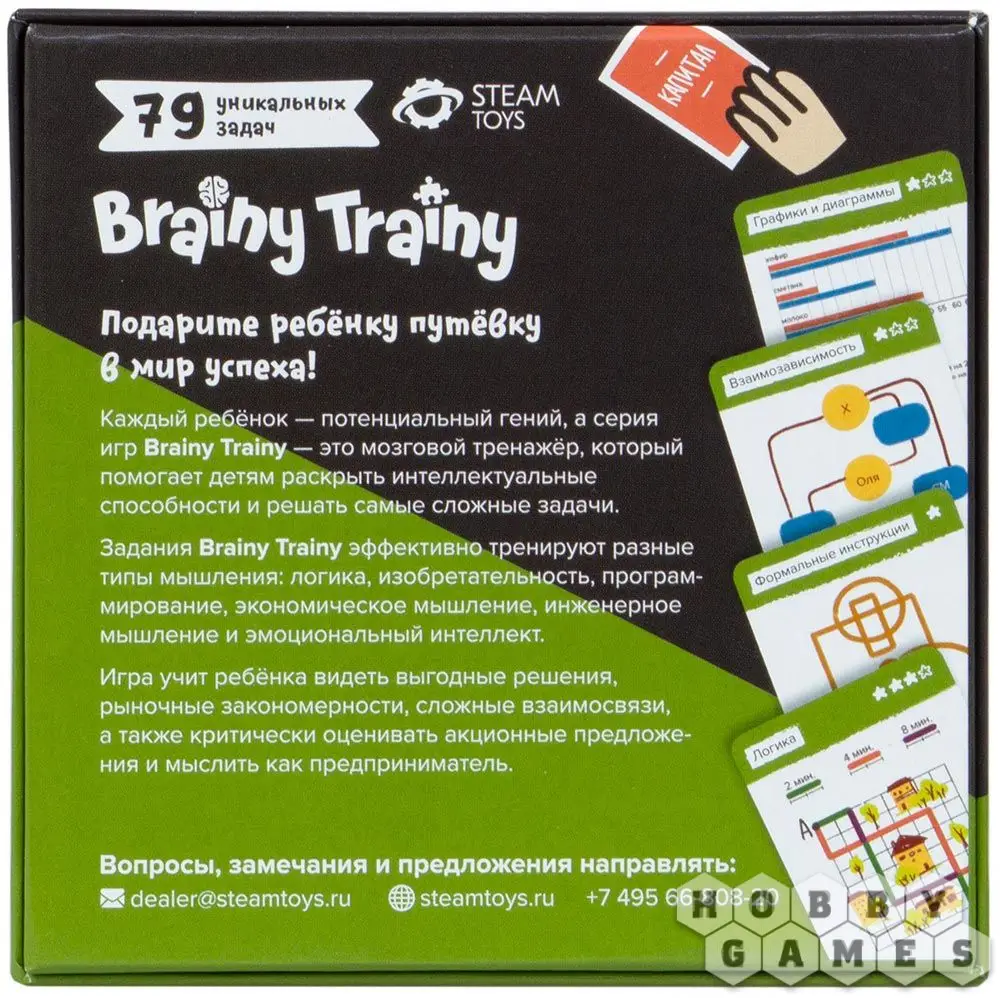 Игра "Brainy Trainy: Финансовая грамотность" учит ребёнка видеть выгодные решения, рыночные закономерности, сложные взаимосвязи, а также критически оценивать акционные предложения и мыслить как предприниматель. В этом сборнике задания рассчитаны для детей от 12 лет, но при этом решать их будет интересно даже взрослым.