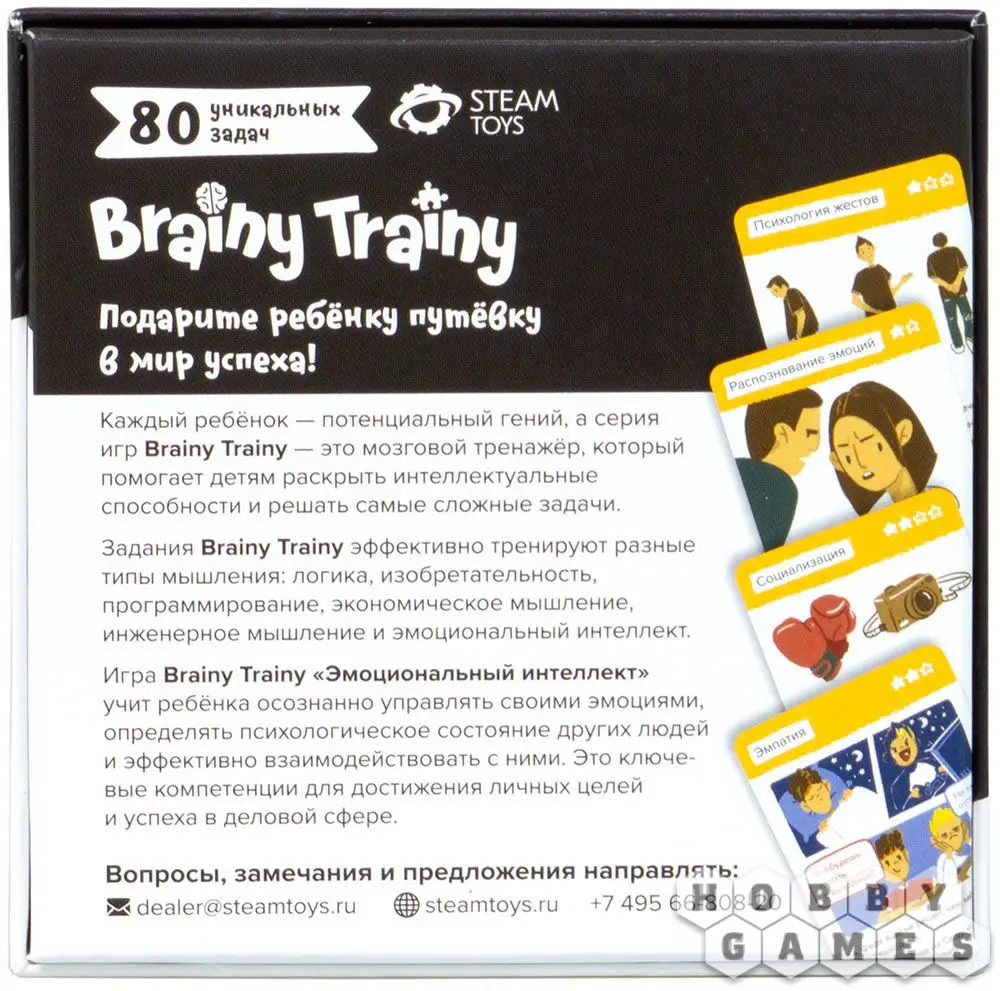 Brainy Trainy "Эмоциональный интеллект" учит ребёнка осознанно управлять своими эмоциями, определять психологическое состояние других людей и эффективно взаимодействовать с ними. Это ключевые компетенции для достижения личных целей и успеха в деловой сфере.