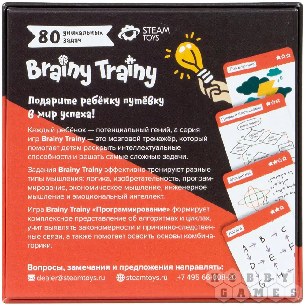 "Brainy Trainy: Программирование" помогает понять устройство циклов и алгоритмов, находить и определять причинно-следственные связи, и усвоить базовые основы комбинаторики.