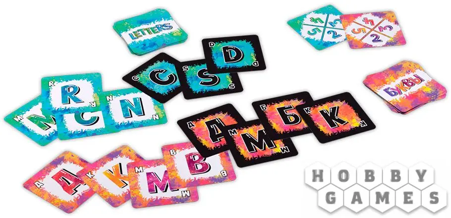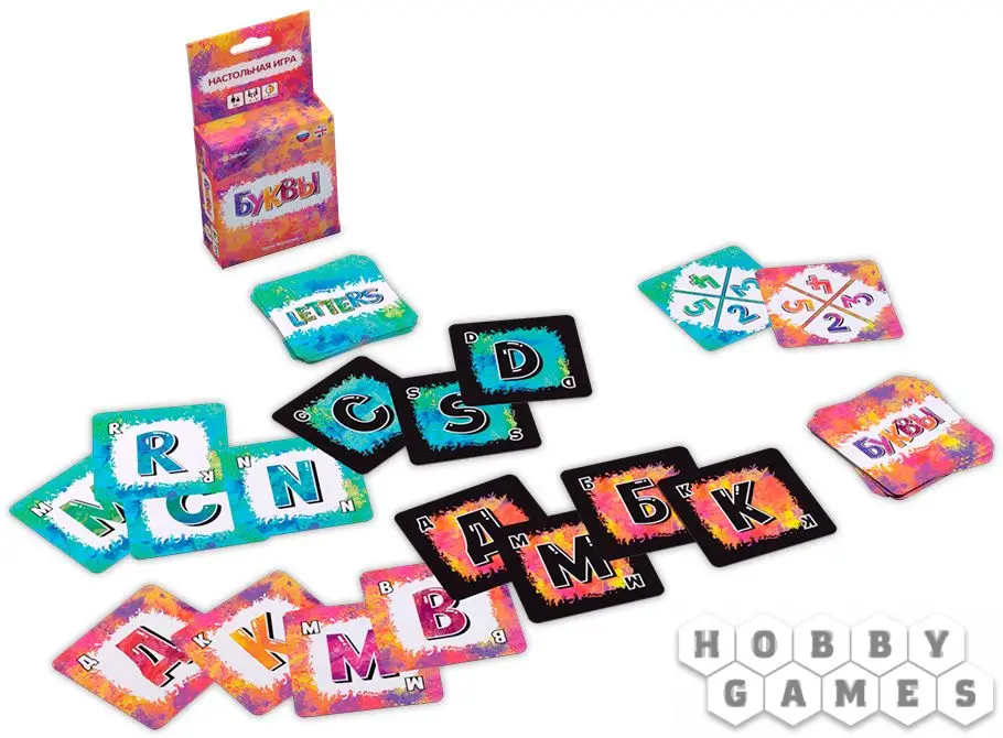 "Буквы" – это простая настольная игра для детей или семьи, в которой нужно маскировать свои тайные буквы другими, составляя слова, а также отгадывать чужие буквы. Игрокам даётся два набора букв, кириллические и латинские, поэтому составлять слова можно почти на всех европейских языках. Внимательно следите за противниками, не дайте себя запутать и заполучите победу!