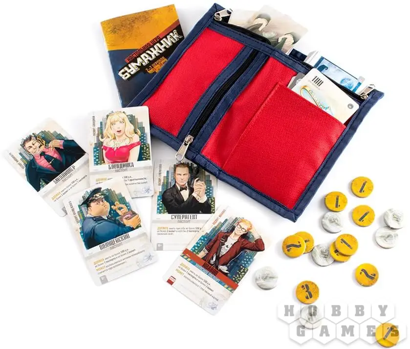 Предъявите документы! В настольной игре Бумажник роли не раздаются в начале, а выбираются игроками, в зависимости от того, какие паспорта оказались у них на руках. Игрок без удостоверения личности сразу будет признан виновным, но наличие паспорта ещё не гарантирует того, что стражи порядка отпустят вас с миром, поскольку необходимость следовать выбранной роли накладывает разные дополнительные условия: как бонусы, так и ограничения. Например, миллионер в отличие от всех остальных гостей обязан иметь больше 500 у.е., но при этом не может иметь больше двух валют, блондинка должна похвастать хотя бы одним скромным бриллиантиком, а суперагент не выйдет сухим из воды, если не предъявит второй паспорт.