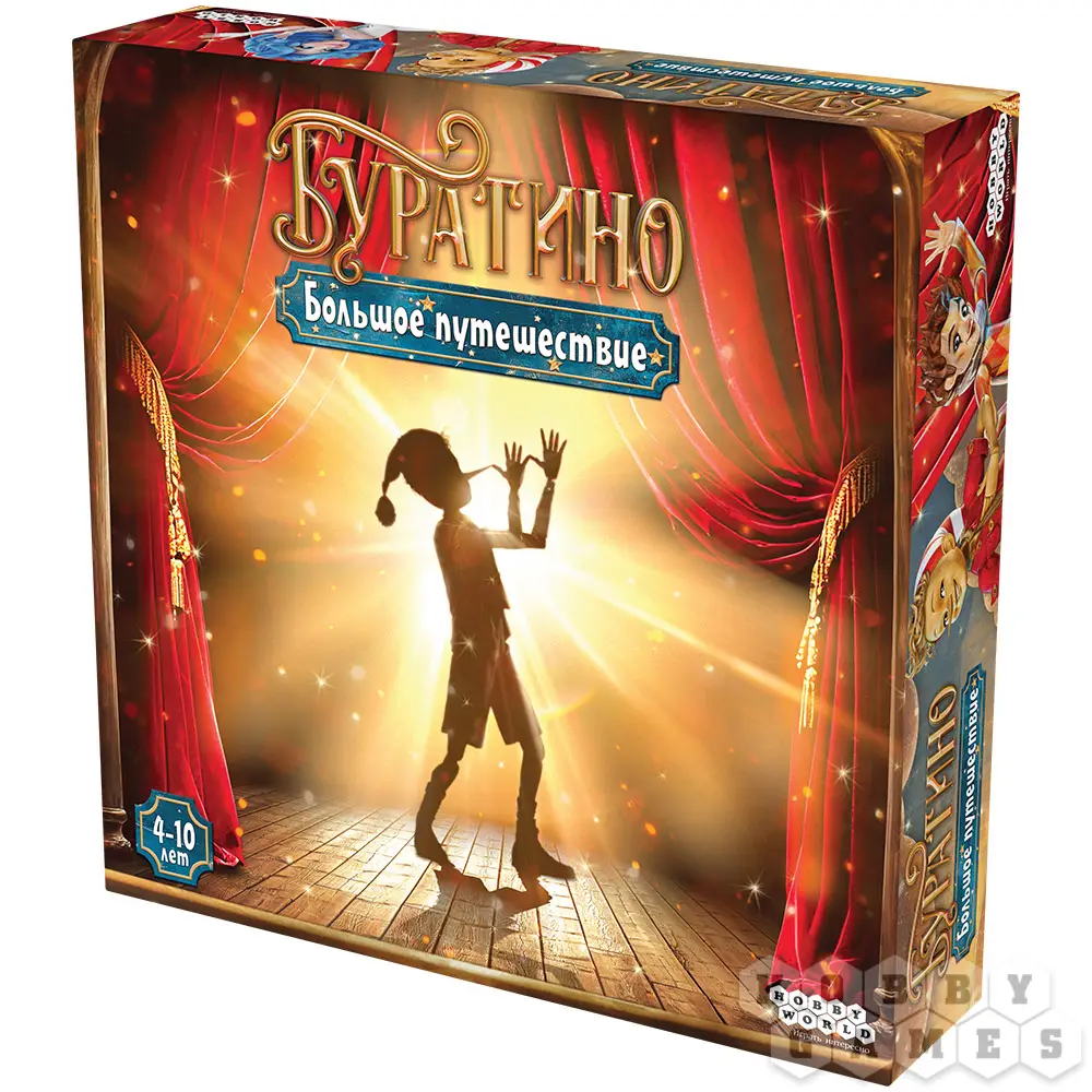 В этой увлекательной настольной игре вы станете частью команды знаменитого Буратино, стремящейся построить новый театр. Ваша задача – бросая кубик, провести фишки любимых персонажей по красочному игровому полю, стараясь собрать как можно больше монет. Эти серебряные кружочки – ваша валюта для преодоления многочисленных препятствий, которые приготовила сказочная дорога. Однако будьте бдительны: коварный синьор Карабас не дремлет и неуклонно движется по вашим следам, грозя разрушить все планы!