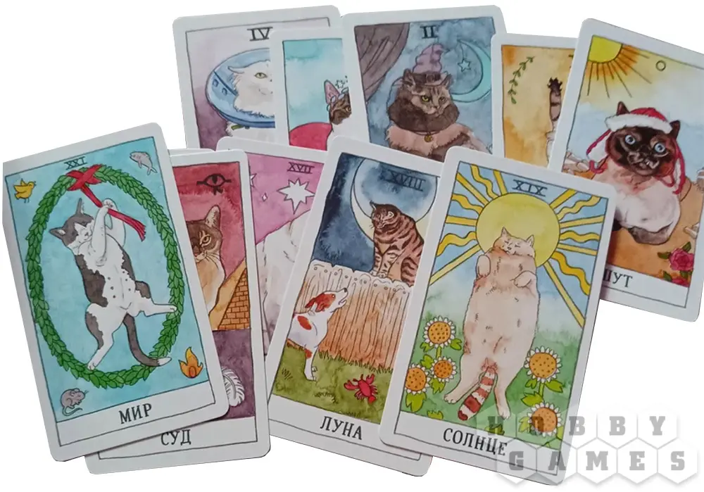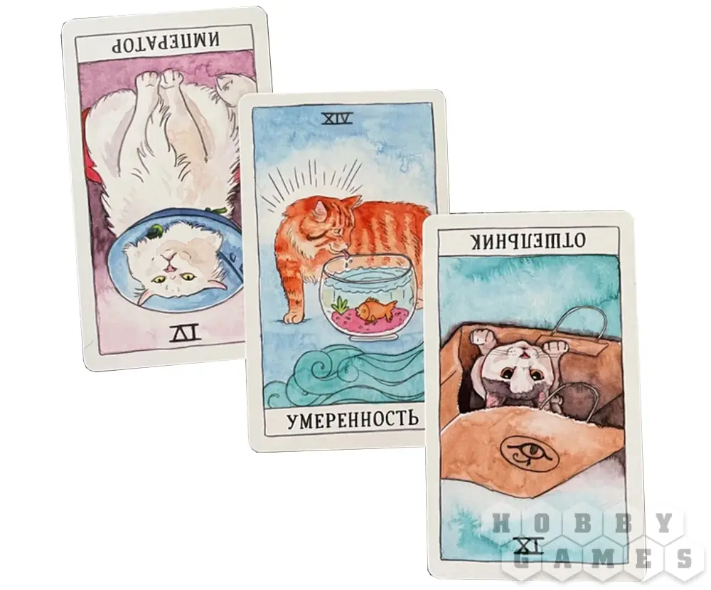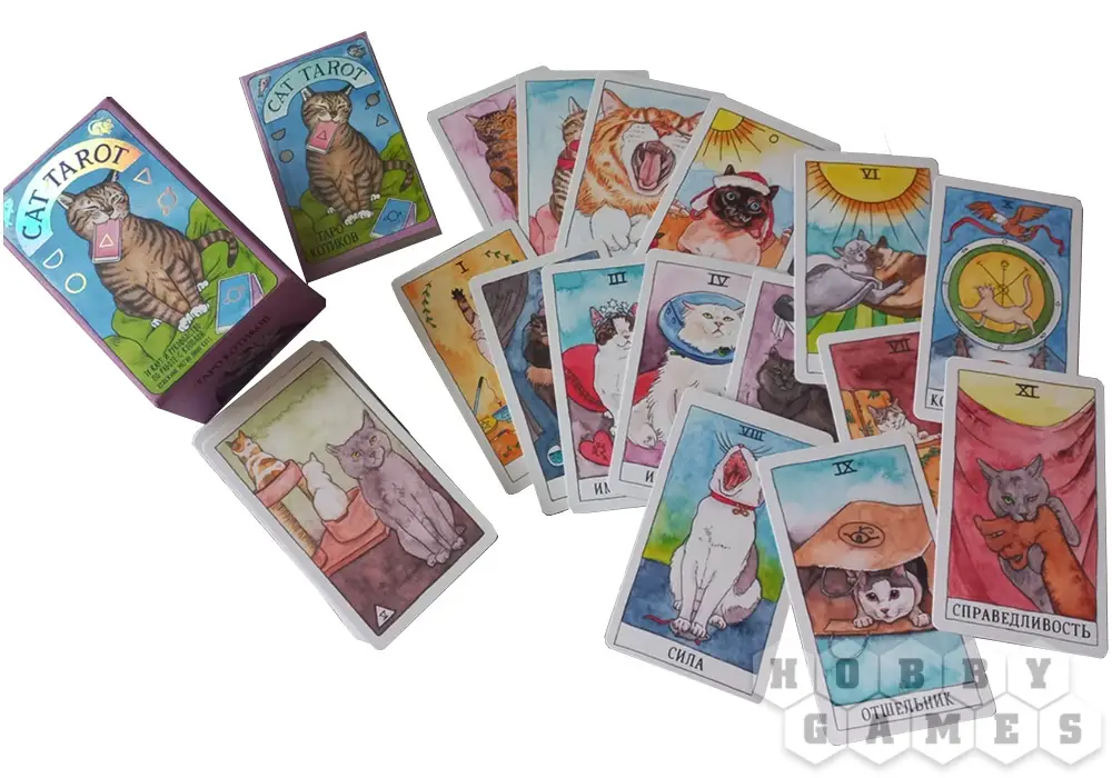 Котики наблюдают за нами отовсюду! Котики знают о нас всё! Во многих сказках и легендах котикам отведена роль животного-проводника человека в мир духов! Cat Tarot сочетает в себе каноничность классической колоды Таро с потрясающе мудрыми, глубокими, но забавными сюжетами, созданными художницей Меган Линн Котт. Если вы любите котиков – колода станет жемчужиной вашей коллекции Таро, иллюстрации можно рассматривать и умиляться бесконечно! Однако Cat Tarot подойдет и опытным тарологам. В наборе содержится 78 карт и подробное руководство со значениями в прямом и перевёрнутом положении. Также вы найдёте несколько простых раскладов для начинающих предсказателей Судьбы. Красивая коробка, украшенная фольгой, сделает колоду желанным подарком.