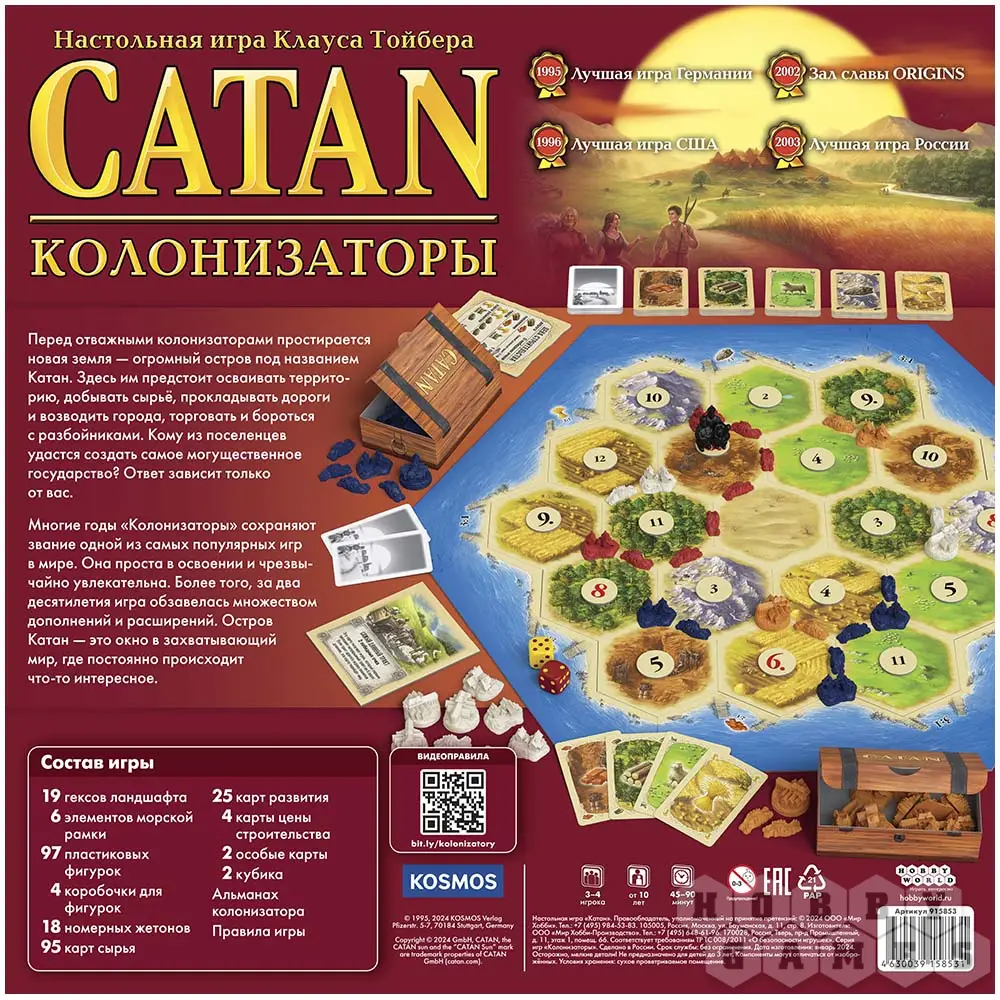 Живой классикой "Колонизаторы" стали за счёт оригинального, продуманного и дружелюбного игрового процесса, в котором игроки выступают в роли мирных поселенцев, осваивающих остров Катан. Игровой процесс уникален, но между тем достаточно прост и увлекателен, что делает из "Колонизаторов" замечательную семейную игру! В роли мирных поселенцев, заселяющих остров Катан, вам предстоит ощутить на себе настоящую жизнь колонизатора: добывать ресурсы, строить посёлки, города и дороги, защищаться от разбойников, торговаться с соседями.