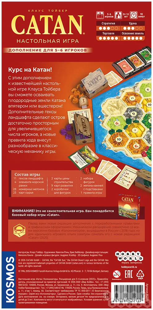 Внимание! Это дополнение. Для игры вам потребуется базовая версия "Catan: Колонизаторы".