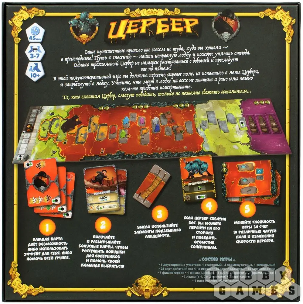 Объединяйтесь против Цербера, играйте друг против друга, управляйте самим мифическим псом – и пусть в этой гонке победит выживший!