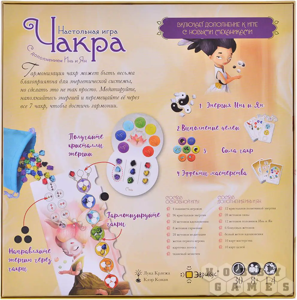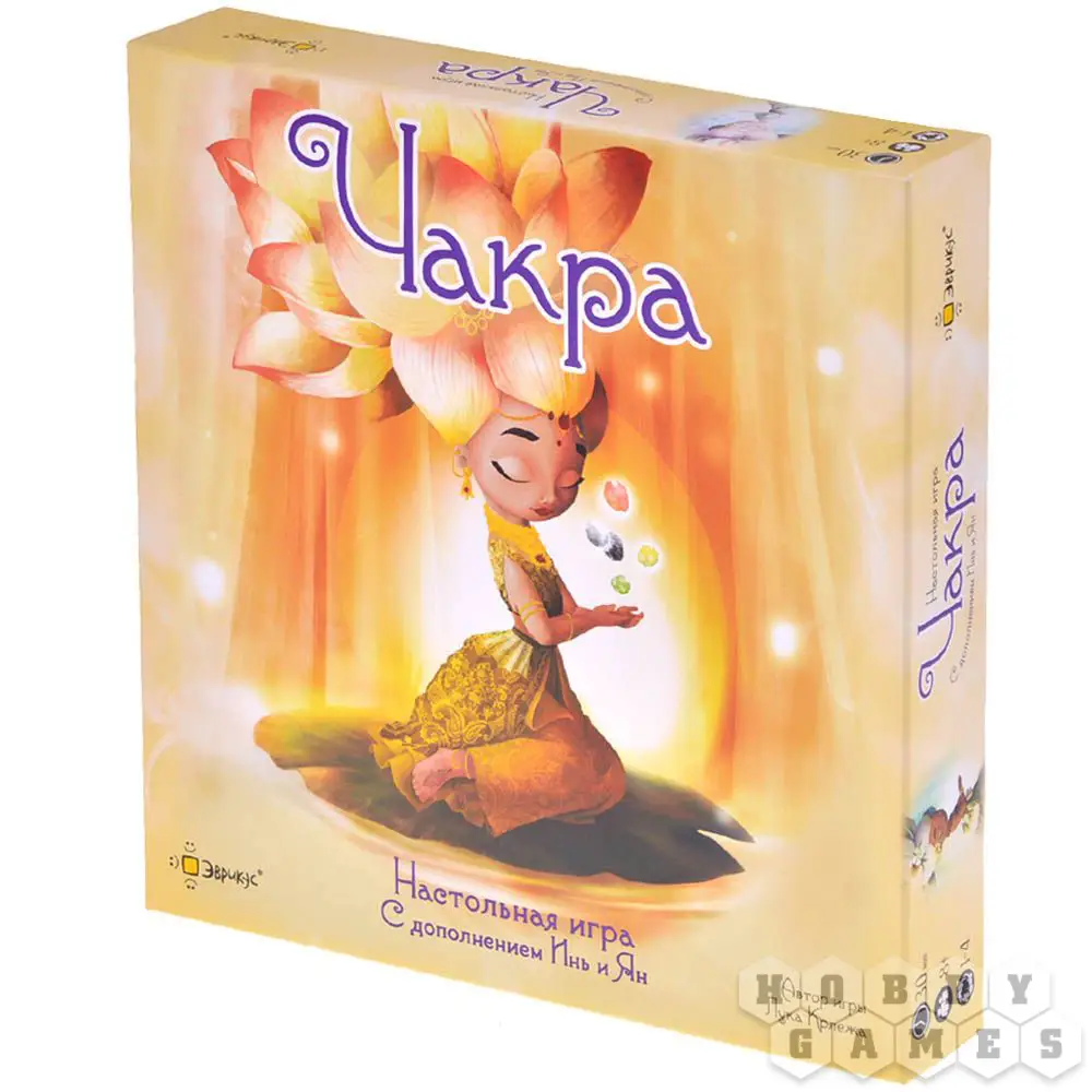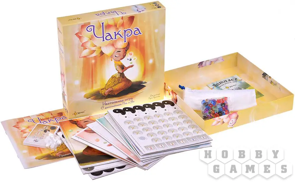 В настольной игре "Чакра" игроки будут стараться гармонизировать чакры, которые представлены на их игровом планшете, параллельно избавляясь от негативной энергии. Все игроки ходят по очереди, выполняя одно из трёх доступных действий: помедитировать, чтобы получить жетоны энергии, получить из общего запаса кристаллы, чтобы разместить их на планшете, или потратить вдохновение, чтобы продвинуть кристаллы по планшету чакр. Чтобы гармонизировать чакры, необходимо разместить в ней 3 кристалла того же цвета, что и чакра, но сделать это будет не просто: все новые кристаллы помещаются на верх цепочки чакр игрового планшета, а перемещаются кристаллы по одному, поочерёдно проследуя чакру за чакрой. Игрок, который быстрее остальных гармонизировал 5 чакр, побеждает в игре.