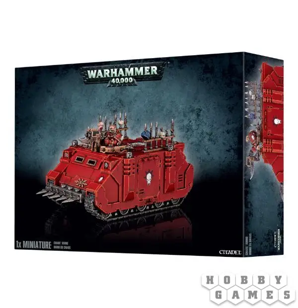"Носорог" Хаоса – это бесценное транспортное средство, позволяющее доставлять ваши отряды в любую точку на поле битвы. Независимо от того, извергает ли он из себя бушующую толпу Берсерков Кхорна (Khorne Berzerkers) или перемещает Разорителей (Havocs) от укрытия к укрытию. Транспорт добавит столь необходимую мобильность вашей армии.