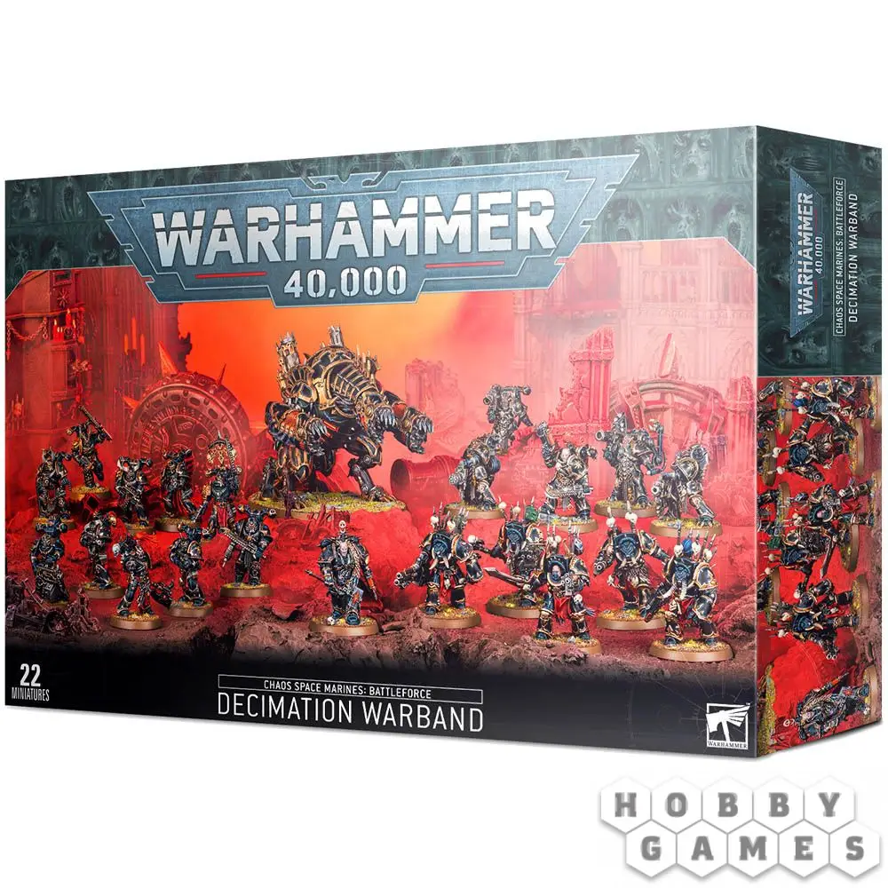 Преподнесите галактику в жертву Тёмным Богам с помощью Отряда Истребления (Decimation Warband). Вне зависимости от того, находитесь ли вы в самом начале своего похода против прислужников Императора или уже имеете внушительное войско Космодесанта Хаоса, воинам из данного набора точно найдётся место в вашей армии.