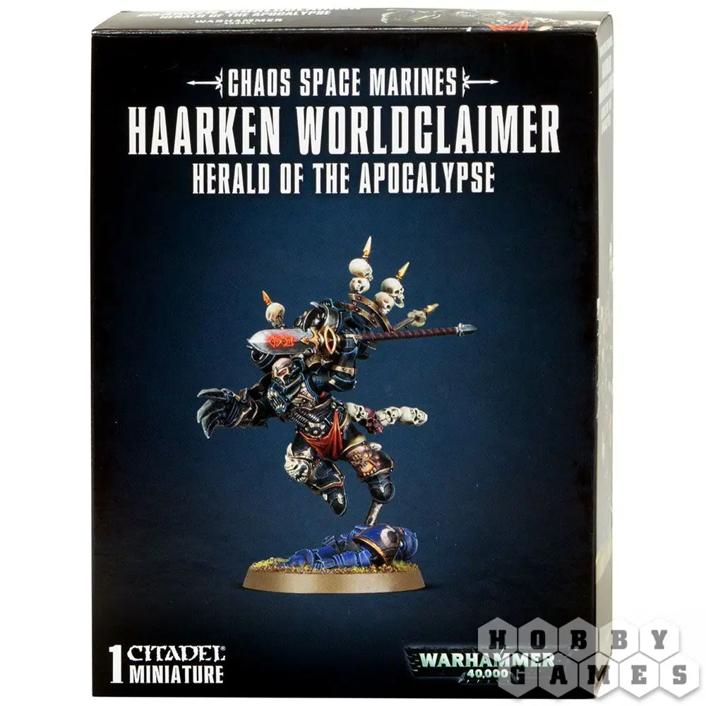 Хааркен Покоритель Миров (Haarken Worldclaimer) – чудовище, наслаждающееся своей ролью возвещающего погибель планет герольда Абаддона. Заезженные угрозы и банальное хвастовство – удел низших созданий, он же несёт тёмные вести, пронзая демоническим копьём Хель (Helspear) сердца и бегущих в страхе горожан, и тщетно пытающихся его остановить солдат. Он – воплощённое знамение рока, предвестник неотвратимой погибели и пришествия самого магистра войны.