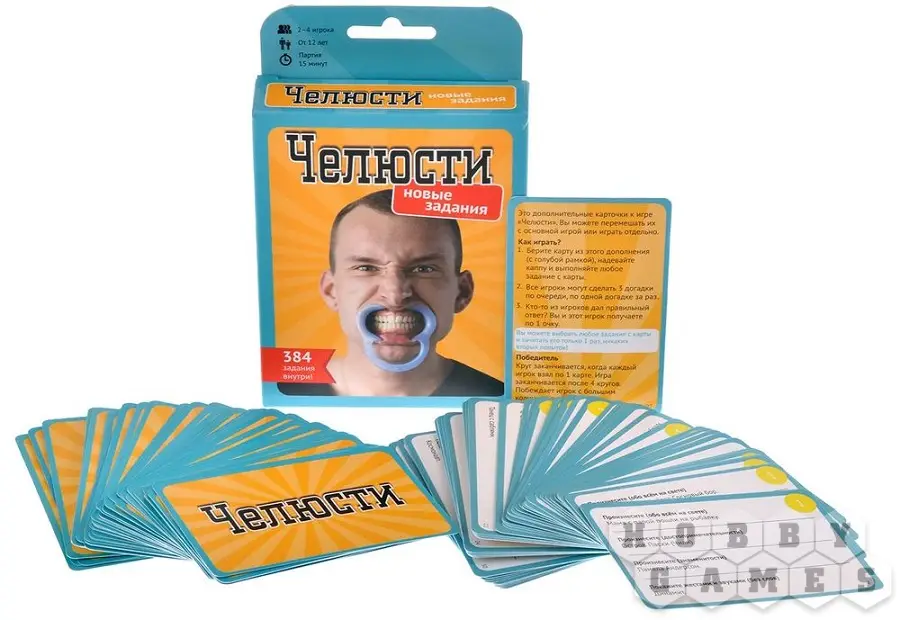 Это дополнение к игре "Челюсти". В нём вас ждут новые смешные виды заданий. Перемешайте их с картами из основной игры или играйте отдельно.