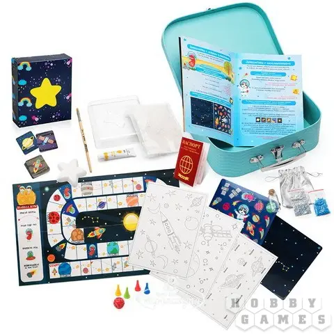 Отправляясь к звездам, не забудьте взять с собой чемодан опытного космонавта! В новом игровом наборе «Чемоданчик с развлечениями» найдутся веселые настольные игры, раскраски, развивающие головоломки, наклейки и инструменты для творчества. Красочная инструкция проведет детей по всем этапам увлекательного космического приключения, а в конце ждет награда – настоящая звезда путешественника!