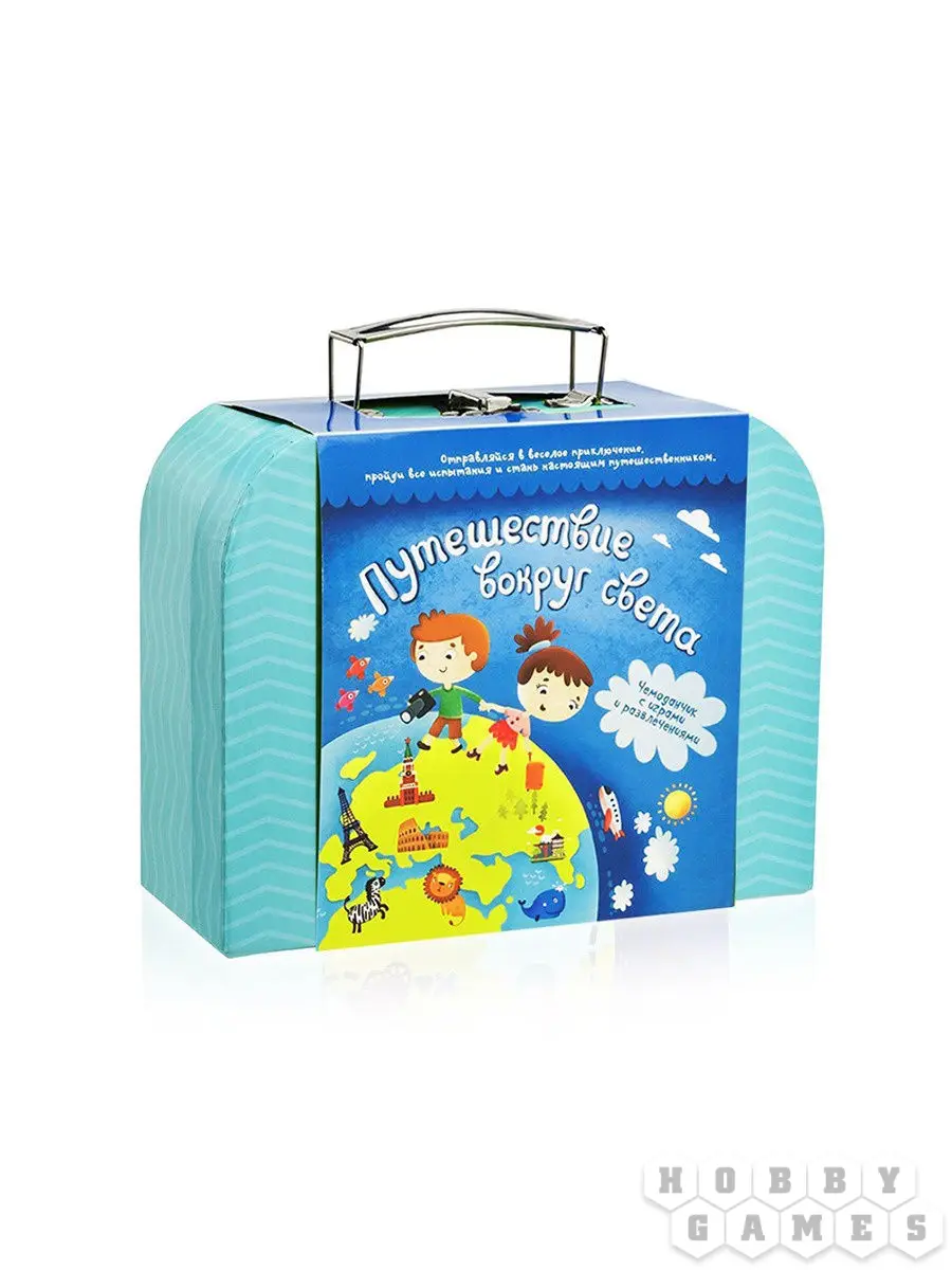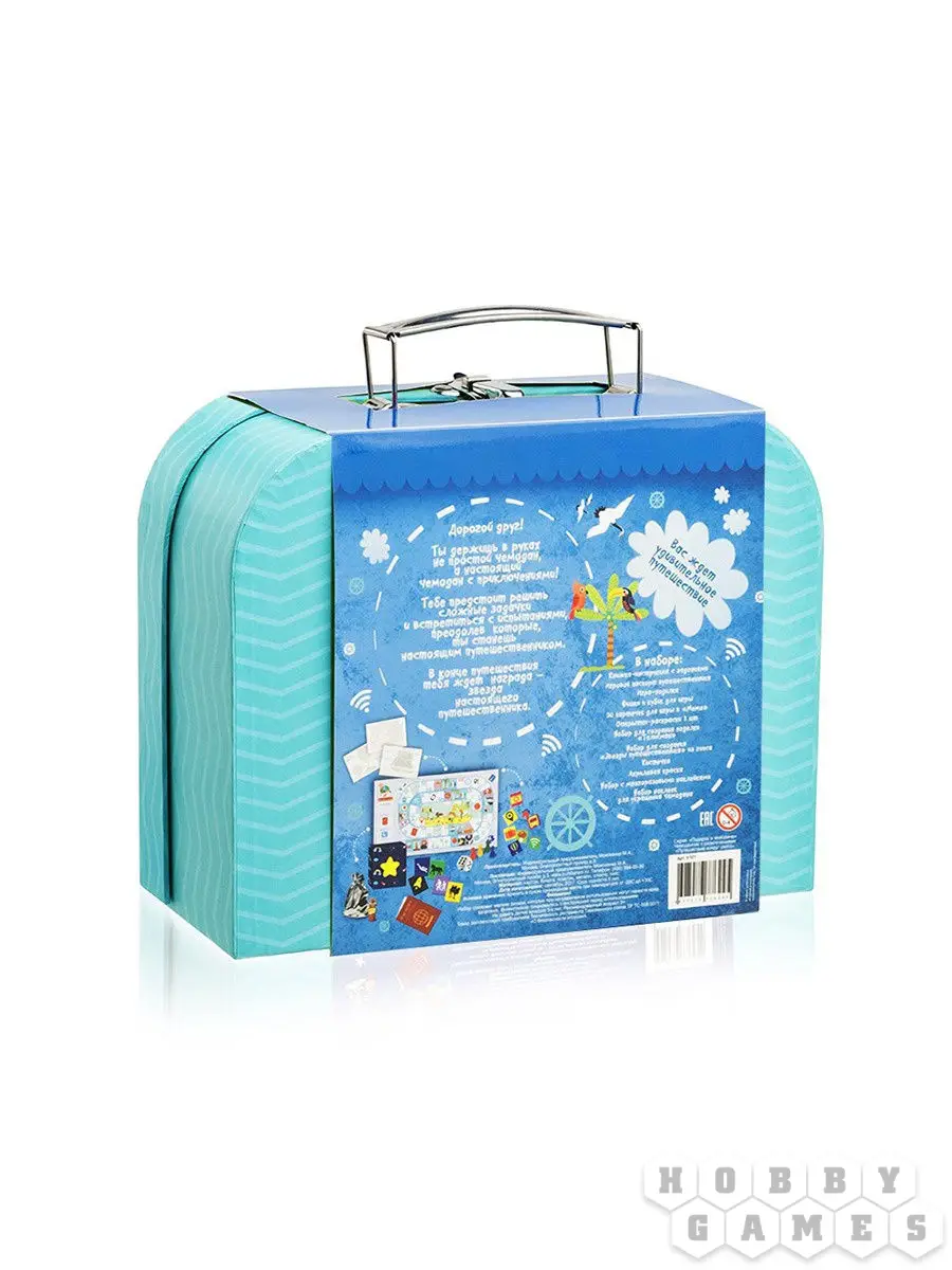 Внутри вы также найдете яркую книжку-инструкцию, с помощью которой можно устроить настоящее приключение, не выходя из дома. А в паспорт путешественника можно проставлять визы за каждое выполненное задание. Конечная цель – большая звезда путешественника! Подарочный набор содержит несколько вариантов развивающих игр для детей, материалы для творческих поделок, наклейки для украшения чемоданчика и многое другое.