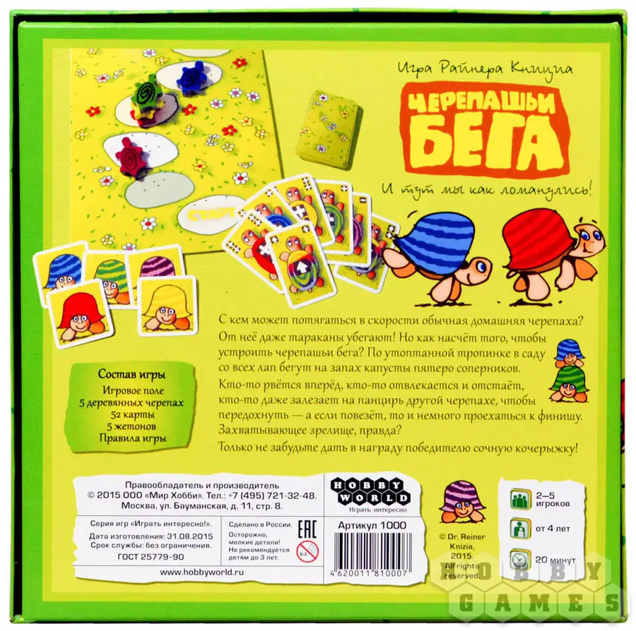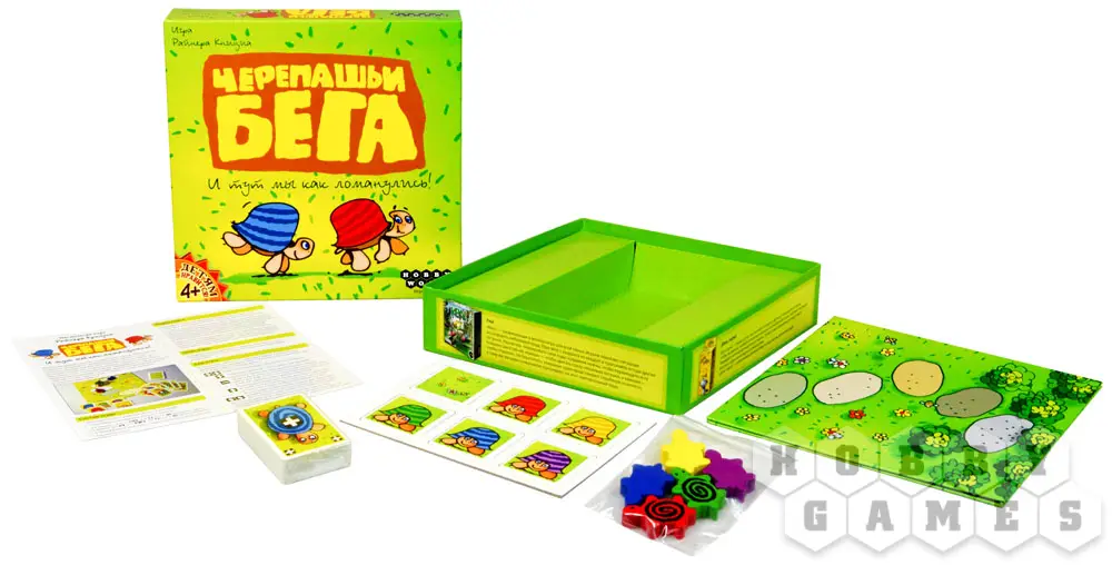 Хорошая, добрая, смешная игра. Яркая и красочная, думаю в 5 лет уже можно пробовать, есть и тактики и стратегии для взрослых. можно играть как 2 так и 4 человека, мы играли даже в двоем но за 2 анонимных черепашек, вообщем весело, правила можно немного додумать, на доске можно и дорисовать по желанию. Советую к покупке!
