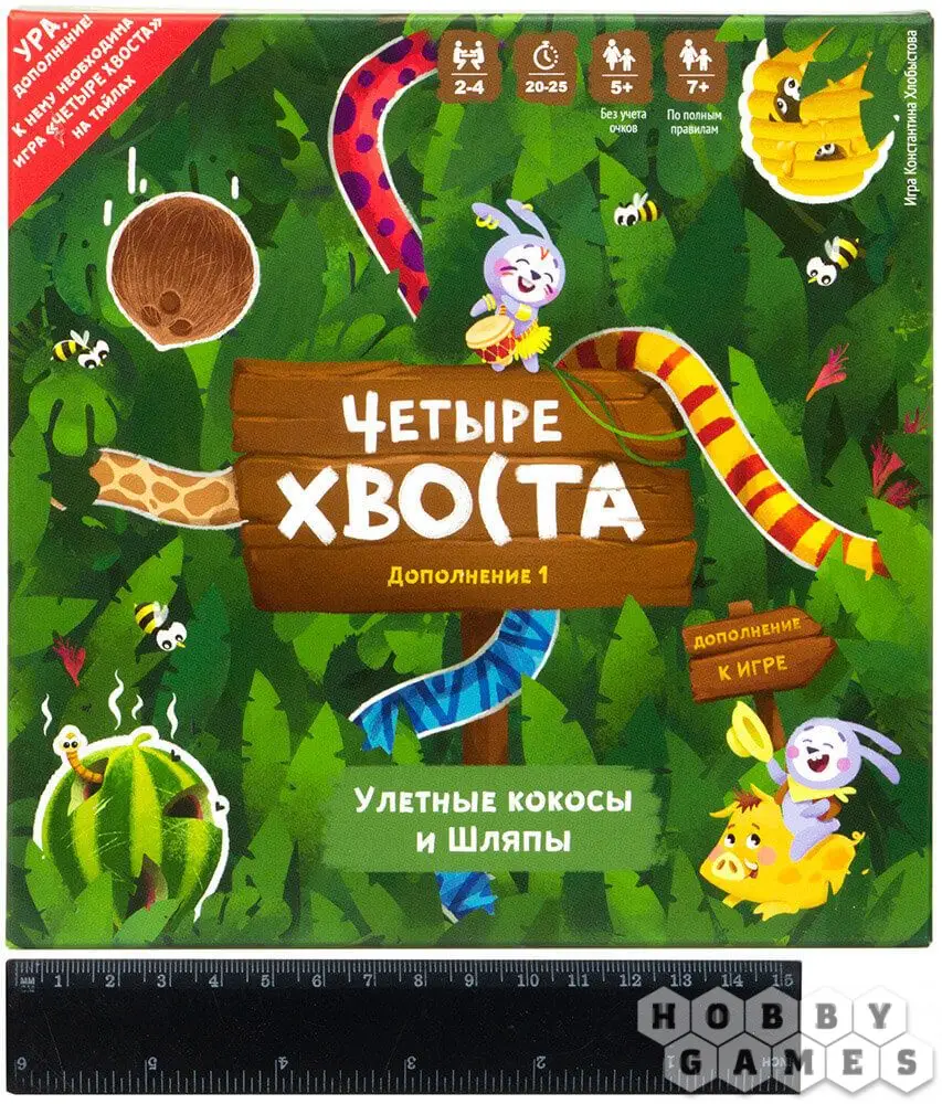 В этом весёлом дополнении к "Четырём хвостам" вы найдёте впечатляющий запас кокосов, которыми можно закидать любого: неважно, союзника или противника. Кокос – это универсальный ответ на все вопросы, которые только могут возникнуть в джунглях. Особенно в кишащих кроликами джунглях. Эти сорванцы заполонили всё вокруг! Вдобавок – последний писк моды: головные уборы из тухлого арбуза, осиного улья и других оригинальных материалов. Не хочется носить такое? Не беда, ведь это и не для вас, а для ваших соперников. Посмотрим, как они справятся с состязанием, когда вы накинете им на голову гнездо разъярённых попугаев. Джунгли зовут!
