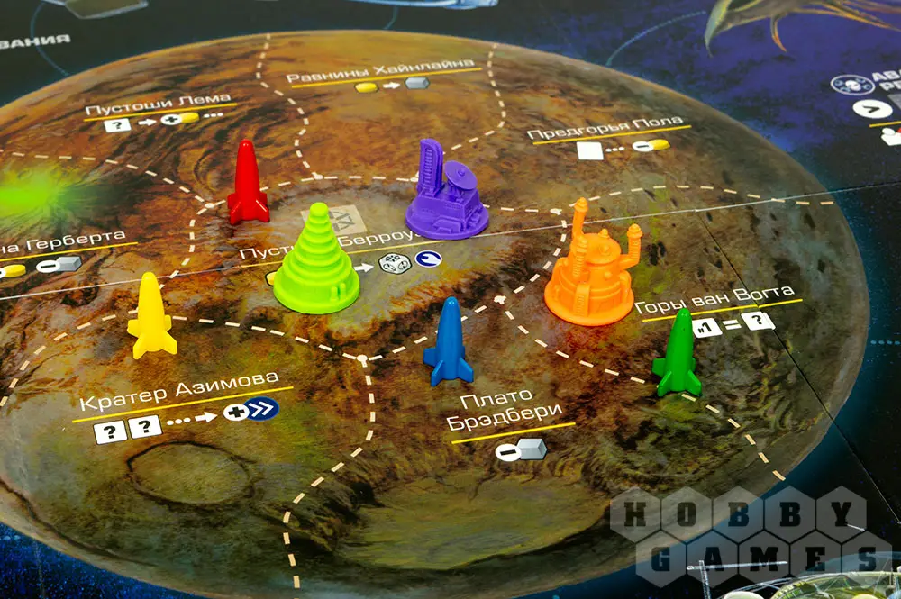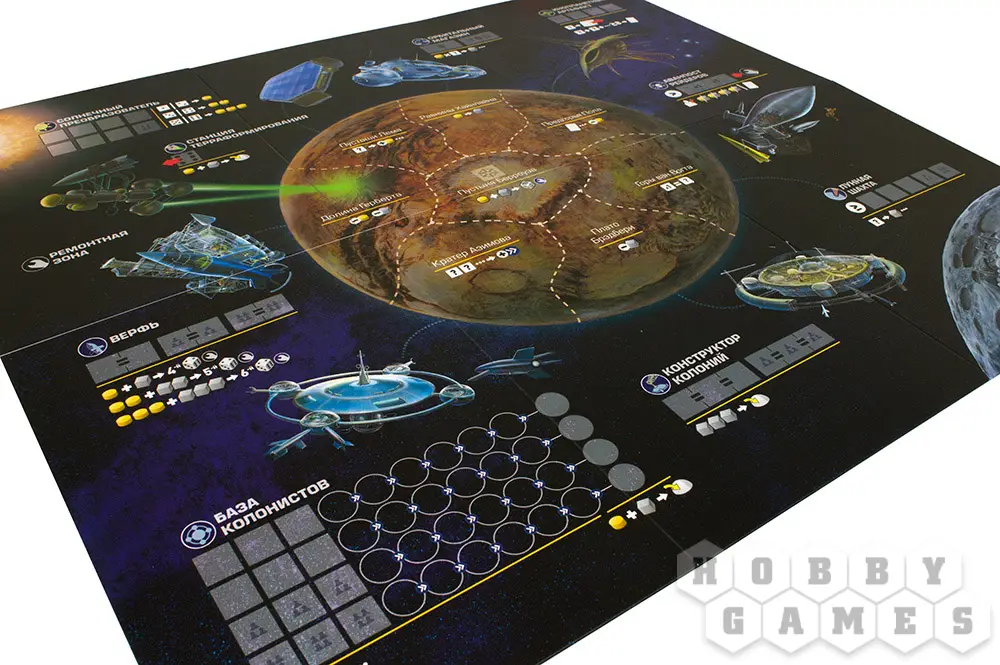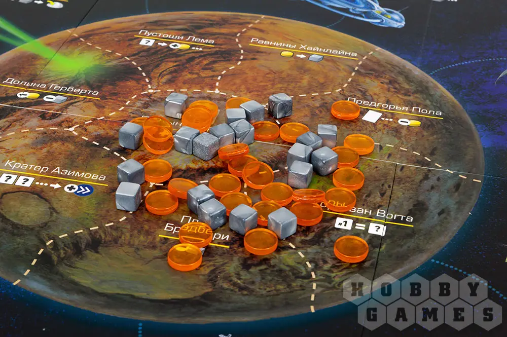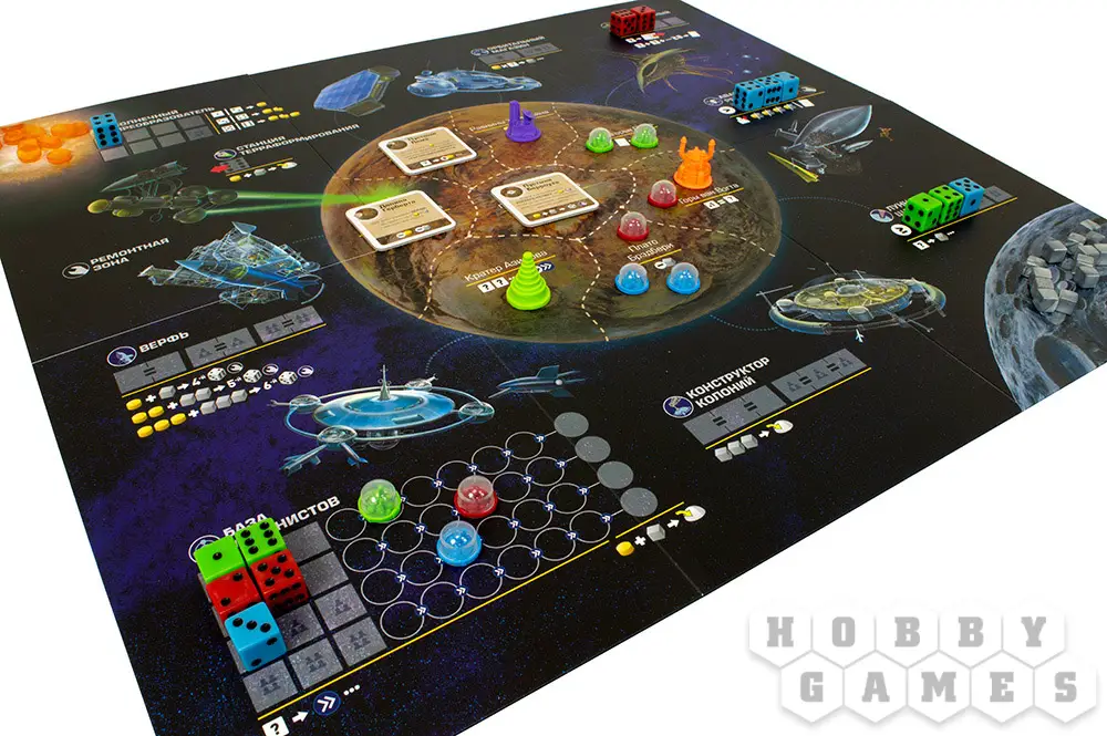 Орбитальный магазин – позволяет обменивать солнечную энергию на руду по курсу, который зависит от результатов кораблей. В любом случае, вам понадобится пара одинаковых кубов