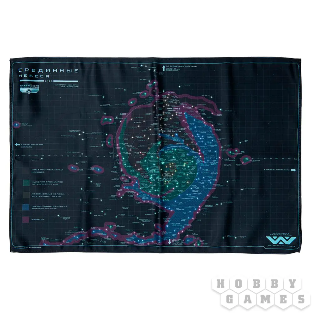 Служба космического транспортного контроля представляет вашему вниманию полноцветную карту Срединных Небес. Эта высококачественная карта звёздного скопления вселенной "Чужих" обладает высокими водостойкими свойствами, не выгорает на солнце, сохраняет яркость печати и станет отличным подспорьем для звёздных путешественников.