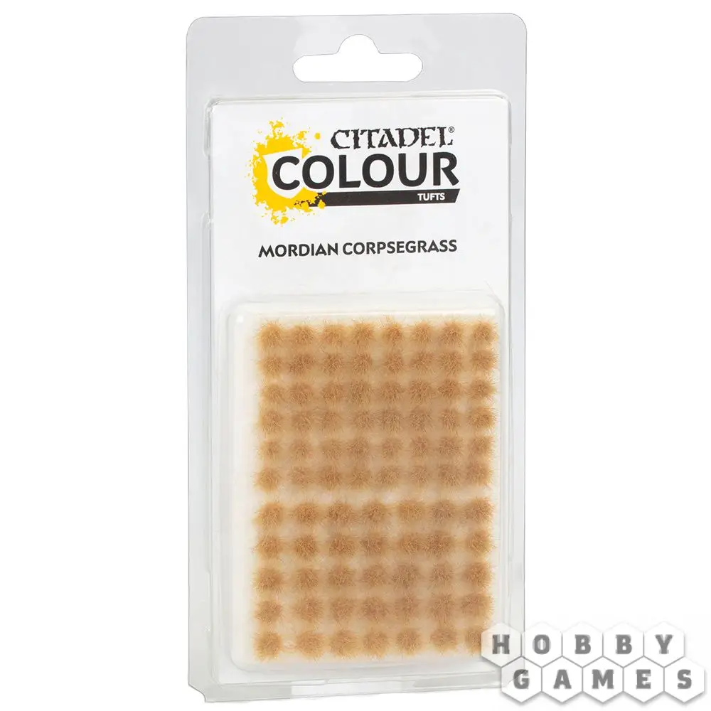 С набором Mordian Corpsegrass Tufts вы сможете декорировать подставки с лёгкостью и изяществом. Данные пучки созданы специально, чтобы их можно было без проблем прикрепить к краске или материалу для декорирования подставок. Также их можно легко рвать на мелкие части, чтобы органично дополнить подставку, отображающую засушливую местность.