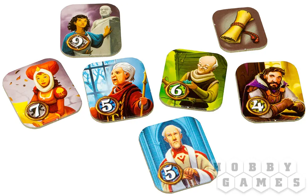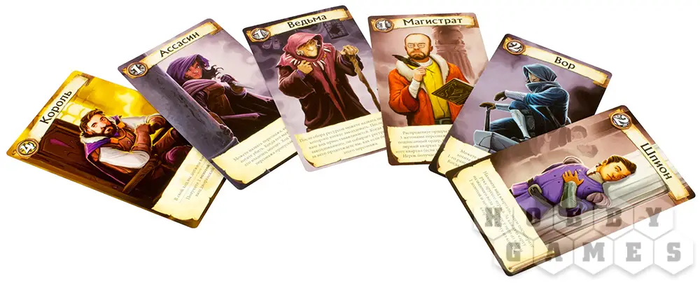 Дело в том, что в начале каждого раунда игроки взакрытую выбирают себе персонажей; то есть никто не знает, каких именно персонажей выберут их противники. Получив и выбрав карту персонажа, вы передаёте оставшихся дальше по кругу. Это добавляет игре элементы блефа и вам потребуется умение предсказывать ходы. Персонажи не только определяют порядок хода, но и дают особые преимущества, а также специальные действия. Купец зарабатывает больше золота, Король получает право первого выбора в следующем раунде, а убийца может лишить хода любого персонажа.