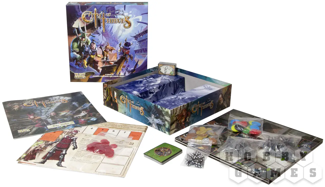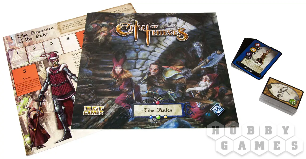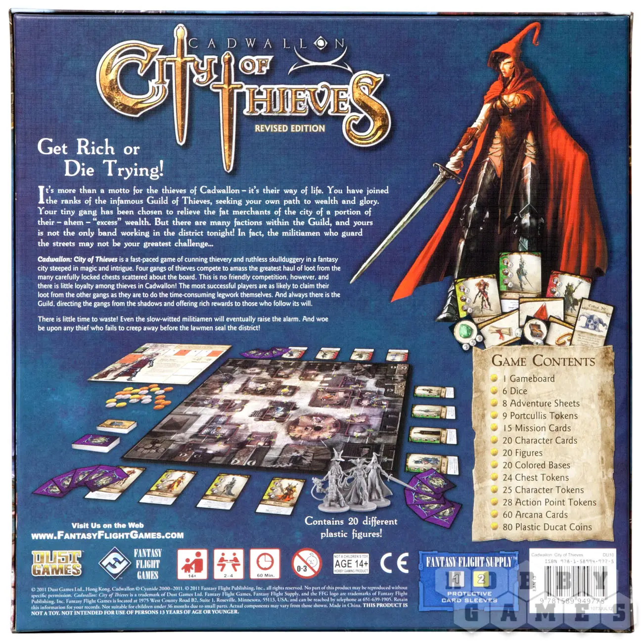 «Cadwallon: City of Thieves» - это динамичная настольная игра о коварных кражах и безжалостном надувательстве для 2-4 игроков, действие которой происходит в городе, затянутом в магию и интригу. Каждый игрок контролирует собственную банду из четырёх воров, конкурирующих между собой за наибольшим уловом ценностей, которые тщательно припрятаны в осмотрительно запертых сундуках. Это далеко не дружеское соревнование, и уж точно среди воров в Cadwallon доверия нет! Наиболее успешные игроки могут просто отбирать добычу у других банд, не утруждая себя отнимающей время беготнёй...