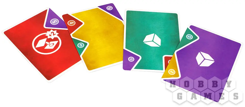 Карты с углами выкладываются по простым правилам: нельзя класть один угол на угол другого цвета, карта может касаться лишь одной другой карты, карты не могут вылезать за пределы оговоренной игровой зоны. Таким образом перед Вами постепенно выстраивается замысловатая цветная конструкция.
