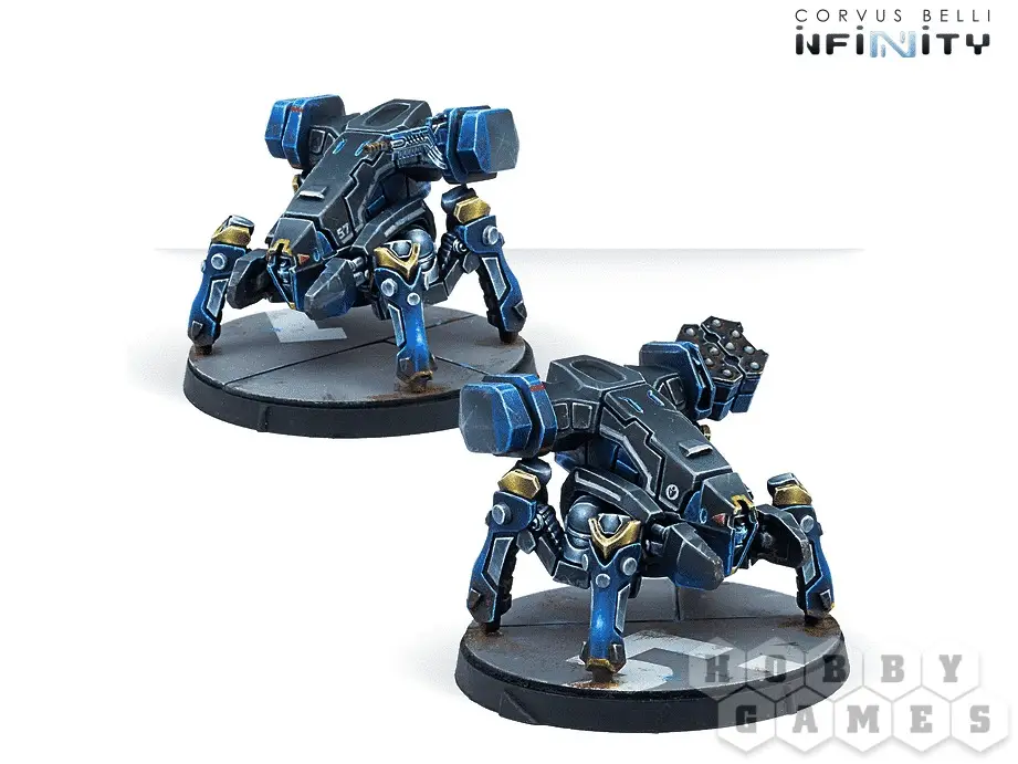 Набор из двух миниатюр: Copperbot Remotes с различными вариантами вооружения, адаптируйте их под свои нужды.