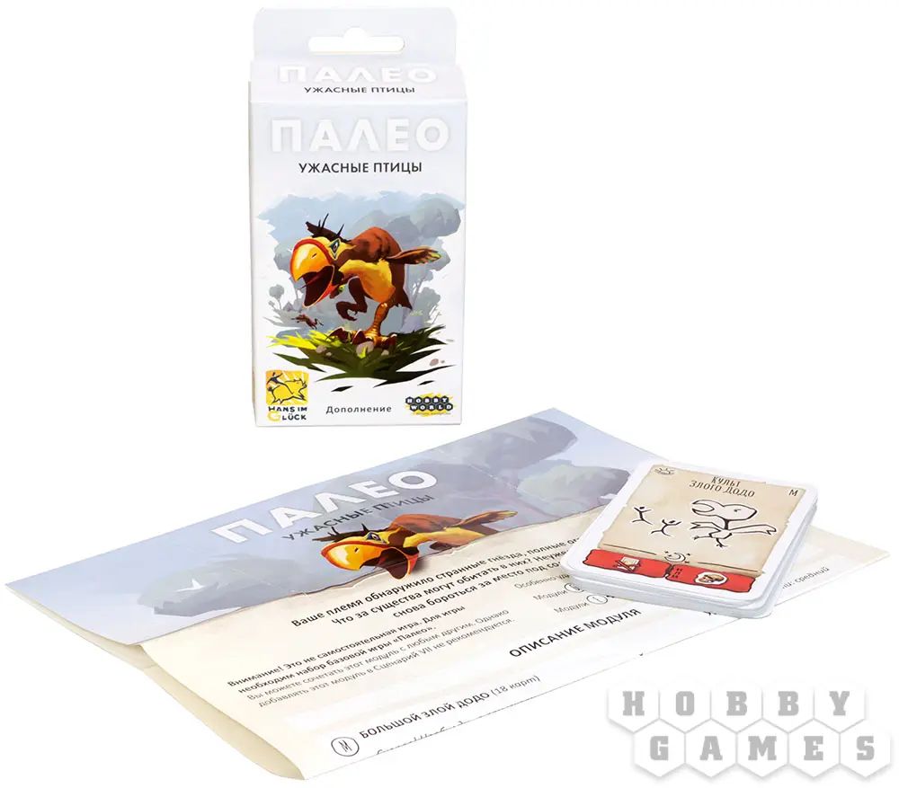 "Ужасные птицы" – модуль к игре “Палео”, который сделает игровой процесс ещё более увлекательным. Найдите и уничтожьте все яйца, пока из них не вылупились пернатые хищники и не добавили вам проблем. Покажите зловредным птицам, кто настоящий хозяин первобытной природы!