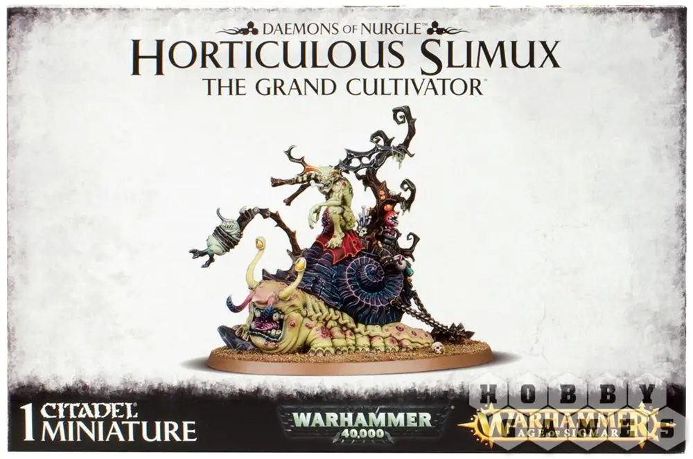 Хортикулюс Слимукс (Horticulous Slimux) – кожистое, испещрённое наростами, словно подгнившее на солнце яблоко, дотошное и угрюмое создание, с бесхитростным подходом к битве, как к возделыванию сада. Восседая верхом на своем неуклюжем моллюскообразном скакуне, ласково именуемом своим наездником Мульч (Mulch), Садовник прокладывает дорогу, вспахивая зловонную почву Плугом (Gruntleplough) и осматривая наметанным глазом ближайшую разлагающуюся растительность. Хортикулюс превращает поле битвы вокруг в изобильно гниющие сады по воле дедушки Нургла.