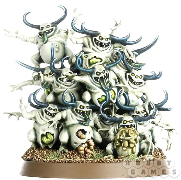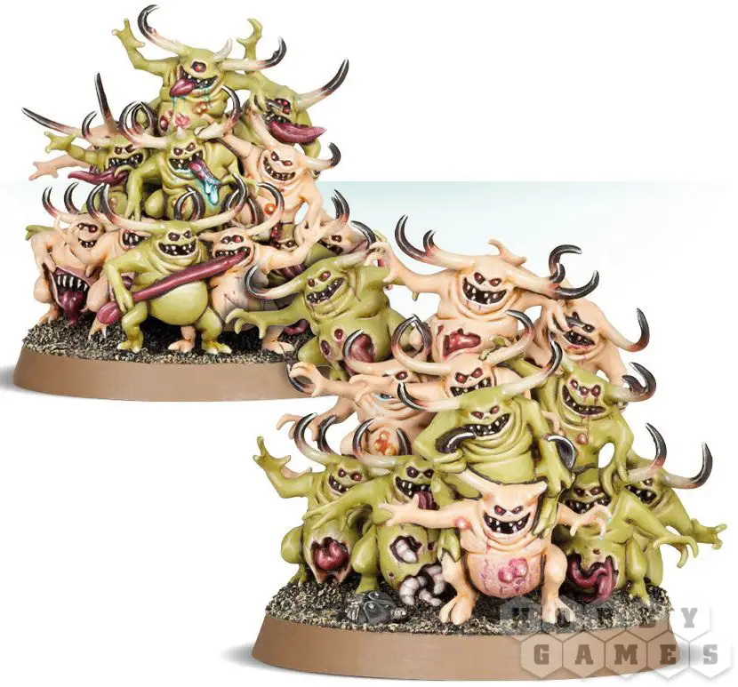 Нурглики - очень болтливые, хохочущие и верещащие создания из Гнили, извергаемой из нутра самого Дедушки Нургла. Эти малютки похожи одновременно на волдыри с ножками, прыщи с ручками или сопли с глазками. Нурглики постоянно кусаются и рвут коготками своих жертв, мгновенно заражая их раны смертельно опасными токсинами. Они обожают пакостить смертным: Нурглики нередко портят молоко, гадят в колодцы, скисают сливки и заставляют безобидные царапины гноиться. Любое войско Нургла сопровождается сотнями таких демонят. Они прячутся в броне смертных воинов, выглядывают из открытых ран, едят желудки лошадей и чумных псов. В бою нурглики собираются стайками, сливаясь в живые пирамидки, которые перекатываются к врагам, хватая их ручками, выковыривая глаза, кусаясь и царапаясь, пока враг не падет под их натиском.