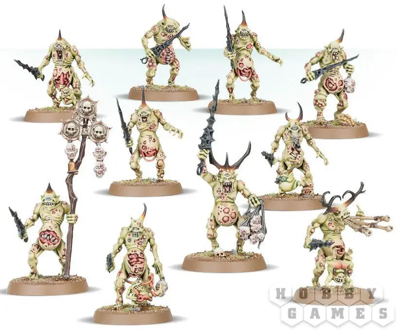 Чумоносцы Нургла - это рядовые воины легионов Нургла. Эти отвратительные Меньшие Демоны были созданы из страдающих душ смертных существ, погибших от жутких болезней, насланных на них Темным Богом. Они вечно несут на себе отпечаток его проказы и неимоверных страданий. Тела Чумоносцев сплошь покрыты отвратительными язвами и наростами, окрашенными в отвратительные зеленые и коричневые тона, а из дыр в их коже сочится темная кровь вперемешку с гноем и червями.