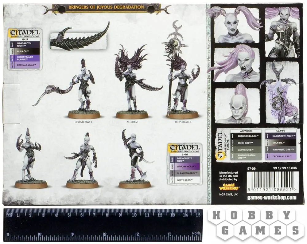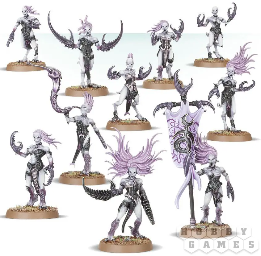 Этот набор содержит детали, необходимые для сборки десяти пластиковых моделей Демонеток Слаанеш (Daemonettes of Slaanesh), которые можно собрать множеством разных способов - в наборе большой выбор различных деталей. Комплект поставляется с десятью круглыми подставками диаметром 25 мм.