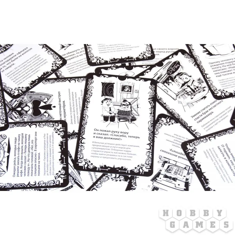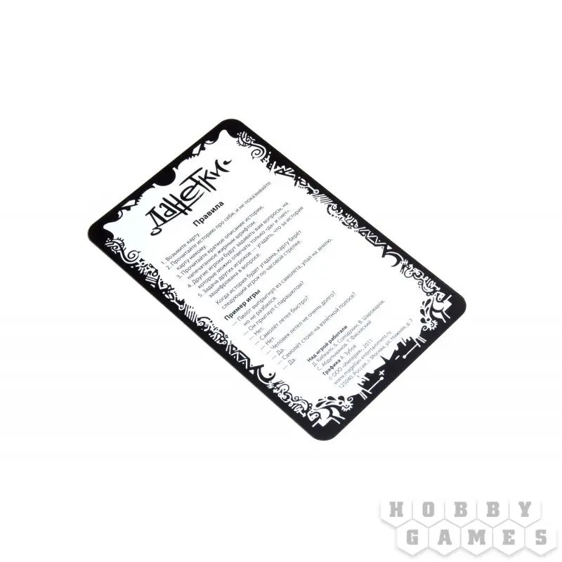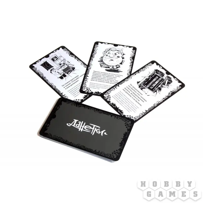 В коробке — 22 необычные истории, написанные на больших карточках. Задача ведущего — прочитать про себя историю и запомнить, а потом прочитать завязку вслух. Задача остальных игроков — задавать вопросы на «да» и «нет», чтобы выяснить, что действительно случилось.