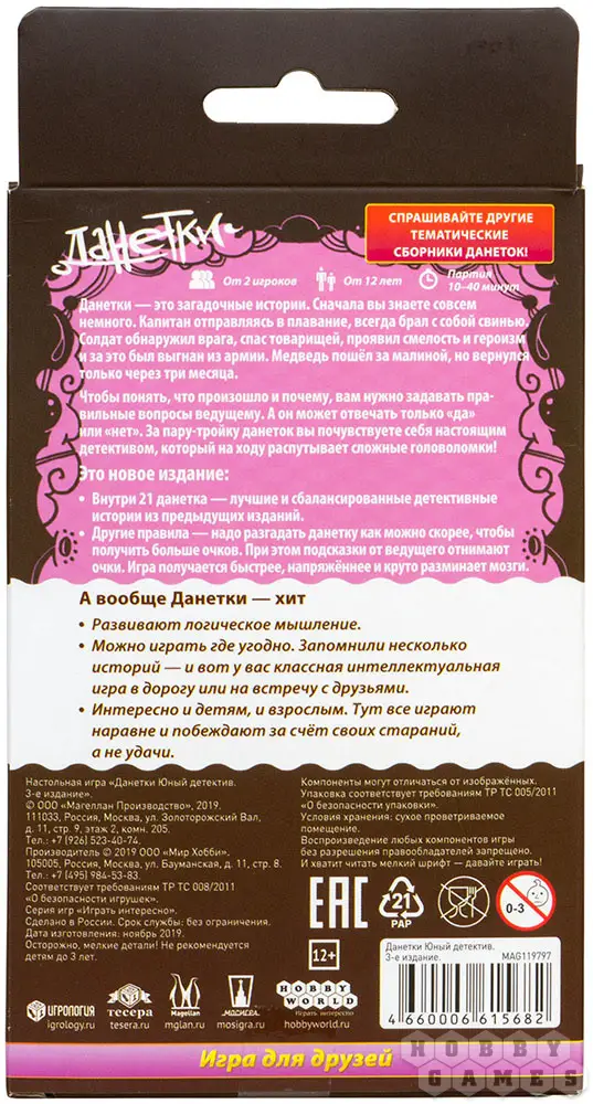 Данное издание содержит 21 задание средней сложности, которые вполне будут под силу юным детективам школьного возраста, но, уверены, что далеко не каждый взрослый сможет сразу раскусить этот крепкий орешек. Так что собирайтесь все вместе, загадывайте и угадывайте, но не забывайте следить за временем, ведь в компании с "Данетками" оно летит незаметно!