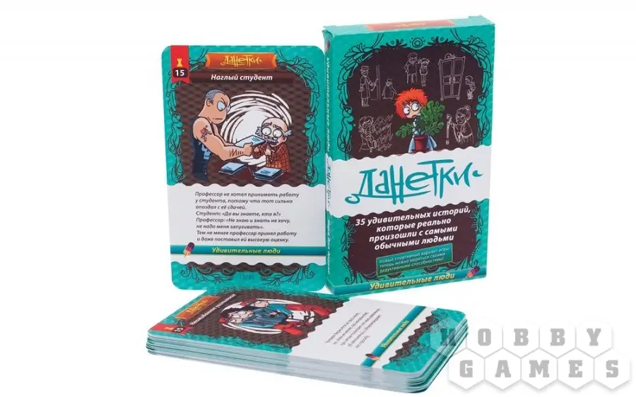 "Данетки. Удивительные люди" - это 35 историй про странных людей с их причудами и необычными поступками. Отгадайте историю, задавая ведущему только такие вопросы, на которые можно ответить "Да" или "Нет".